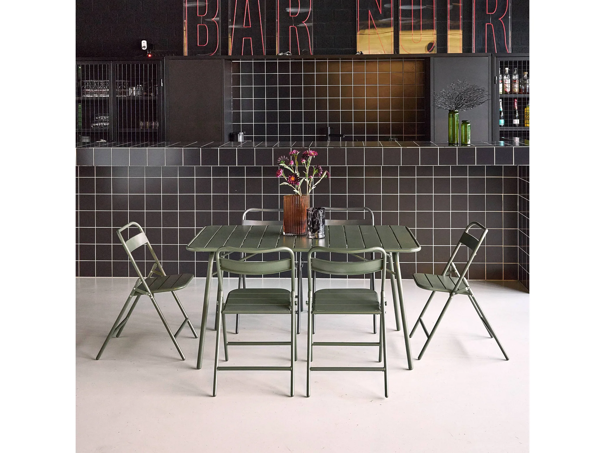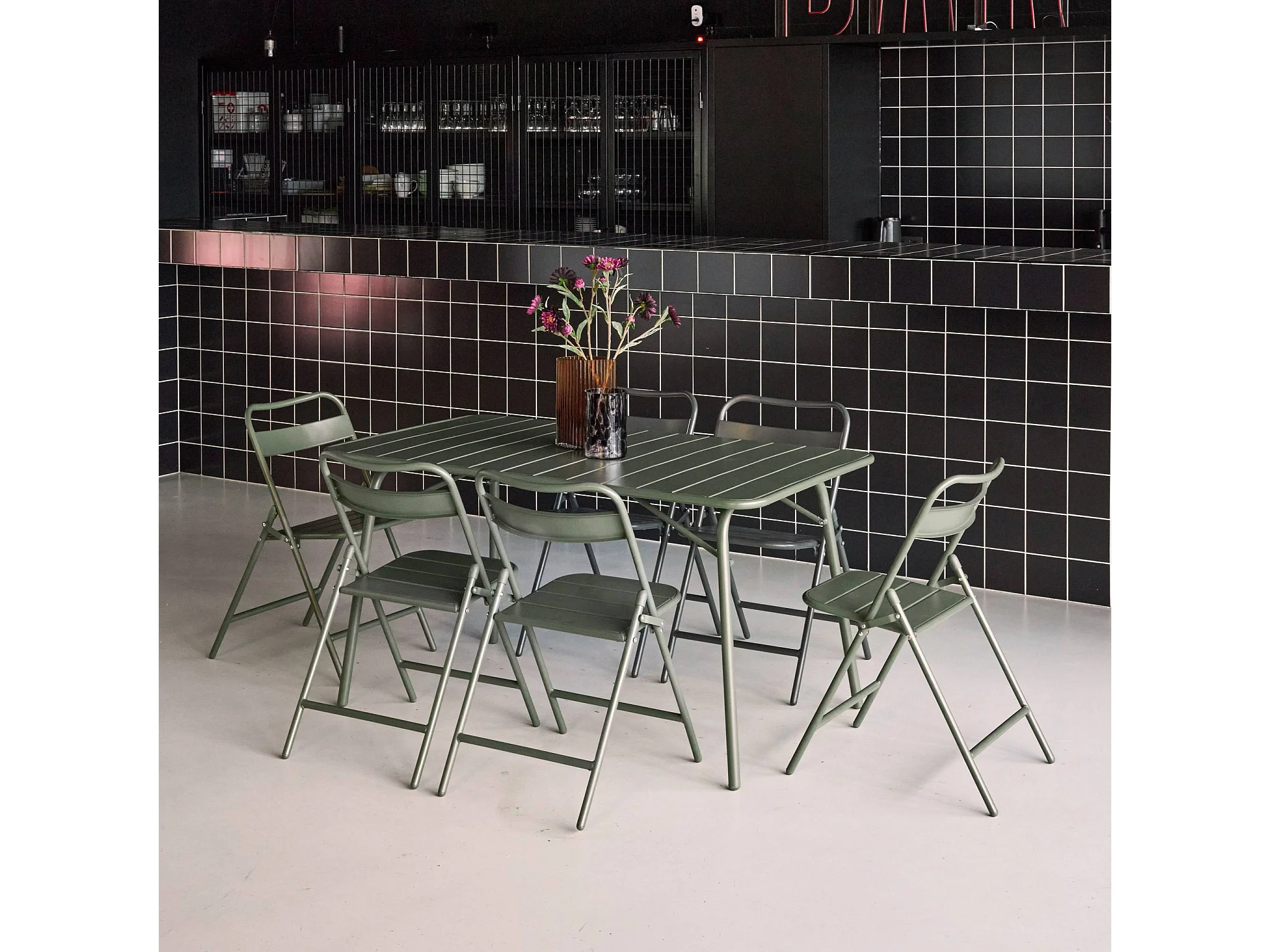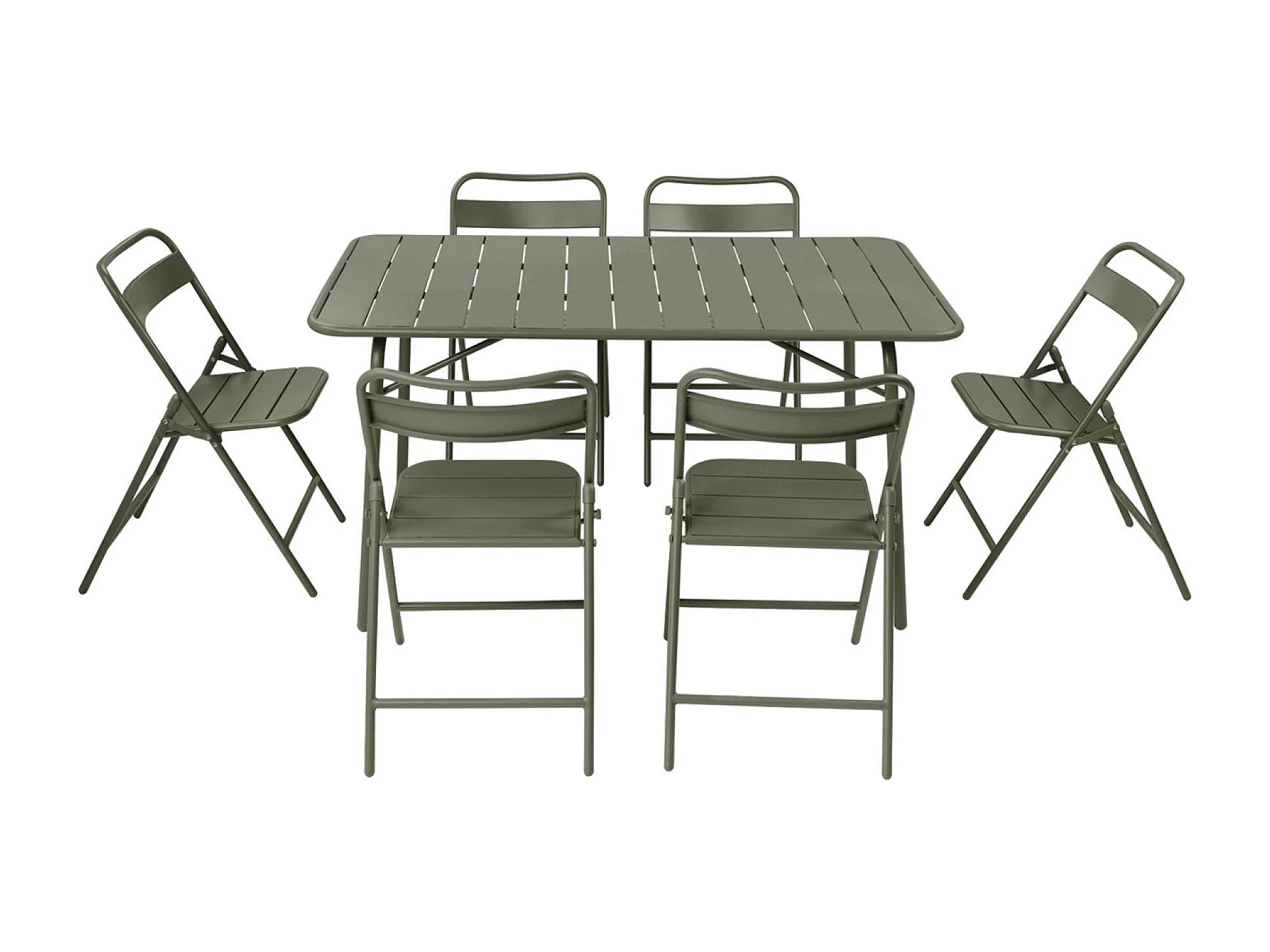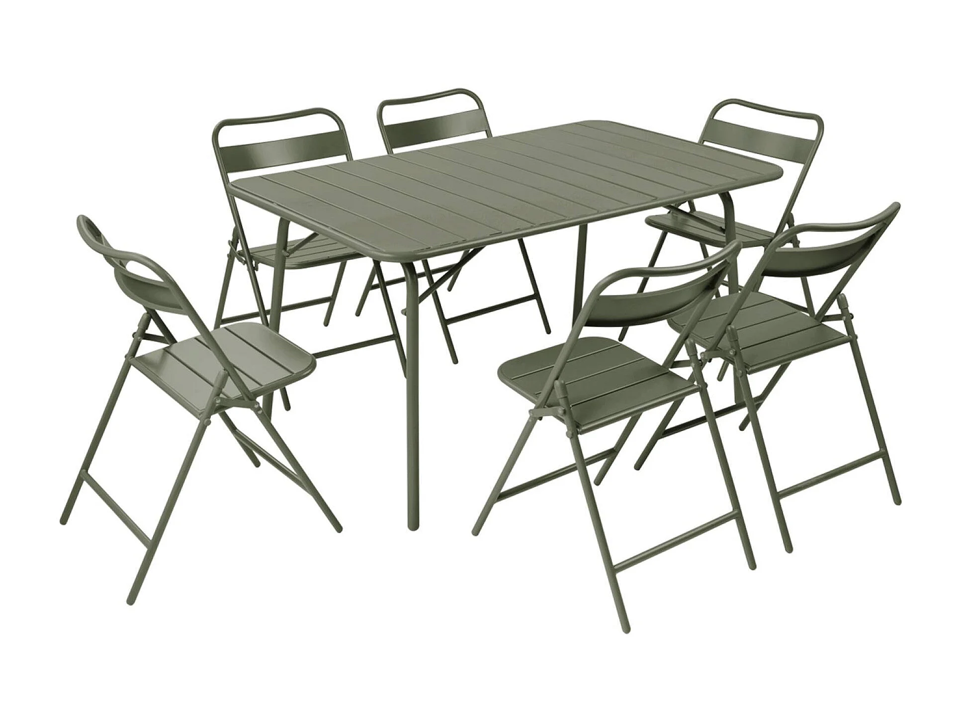 Tavolo da giardino pieghevole in metallo , 6 sedute, verde kaki