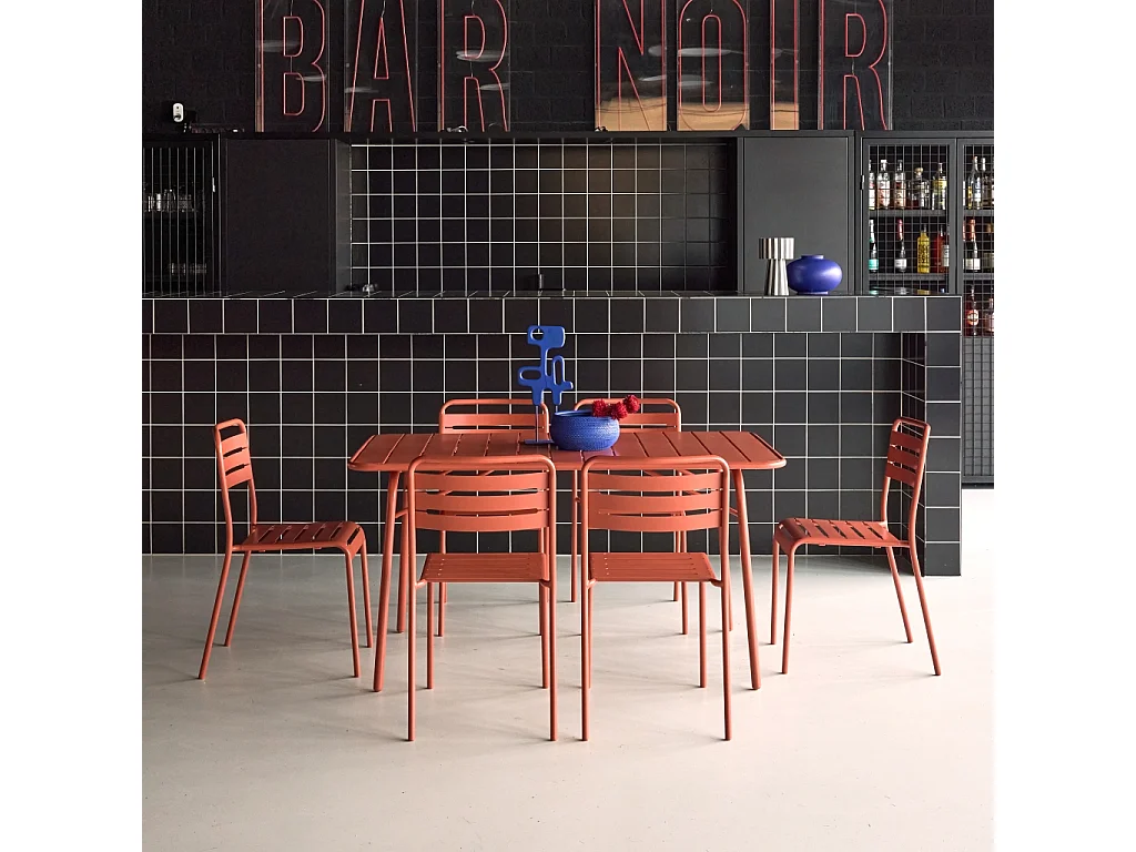 Tavolo da giardino pieghevole in metallo con 6 sedie, terracotta
