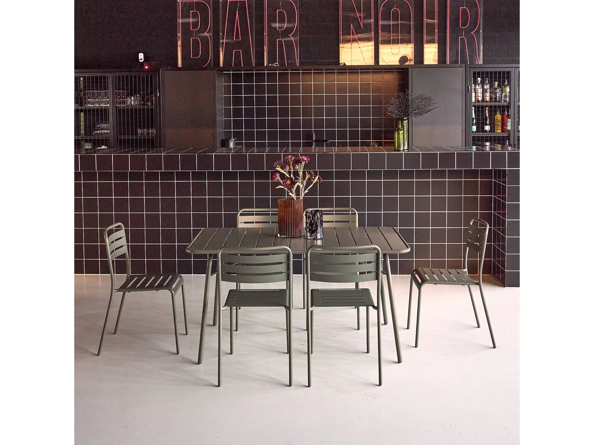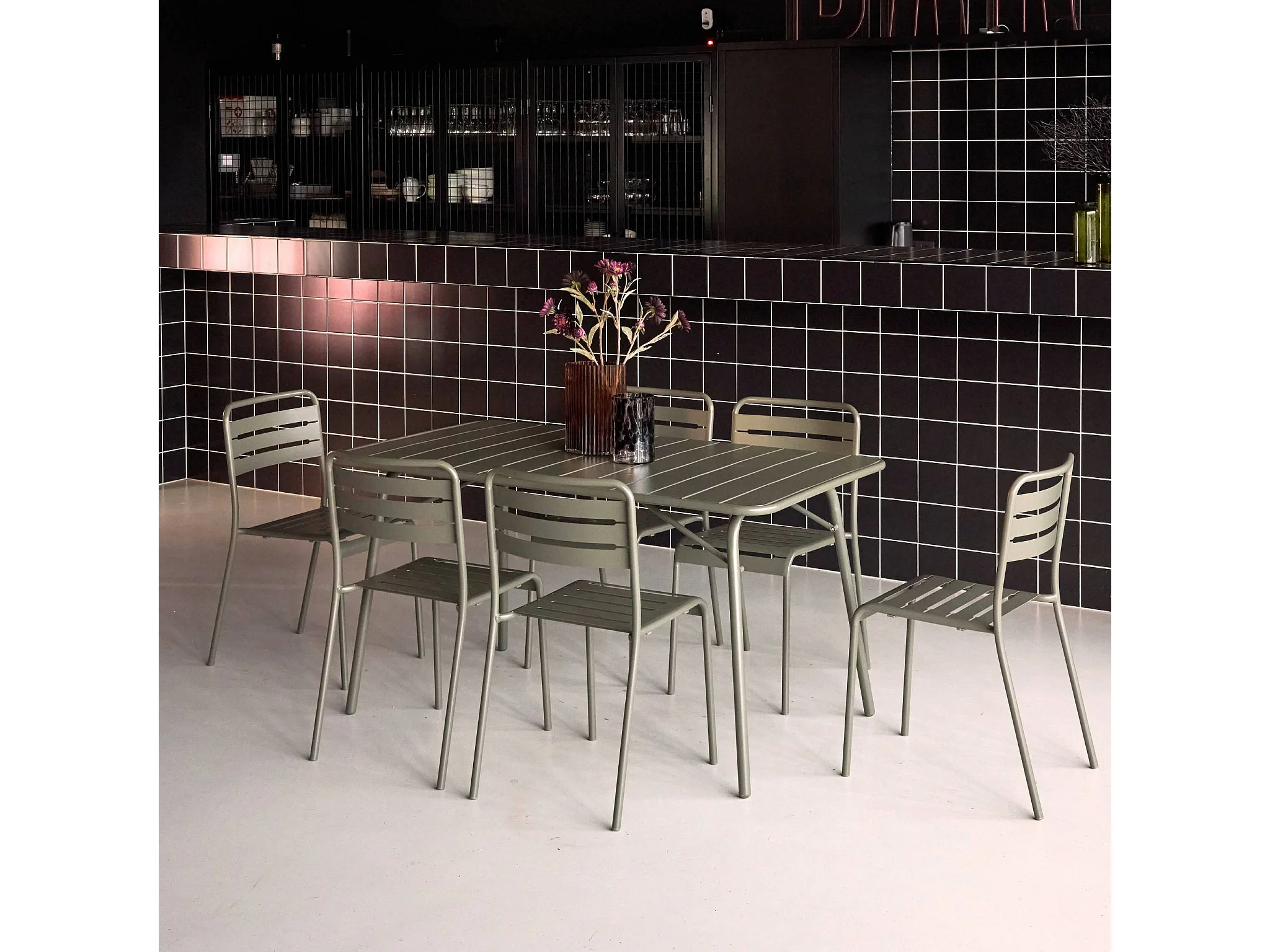 Tavolo da giardino pieghevole in metallo con 6 sedie, verde kaki