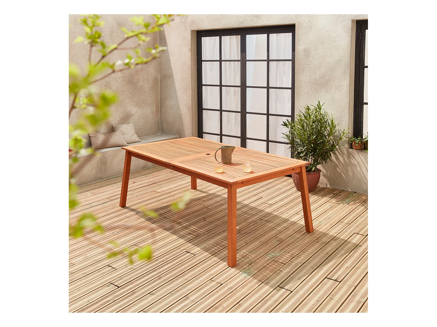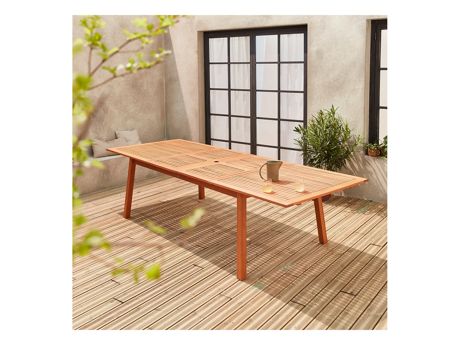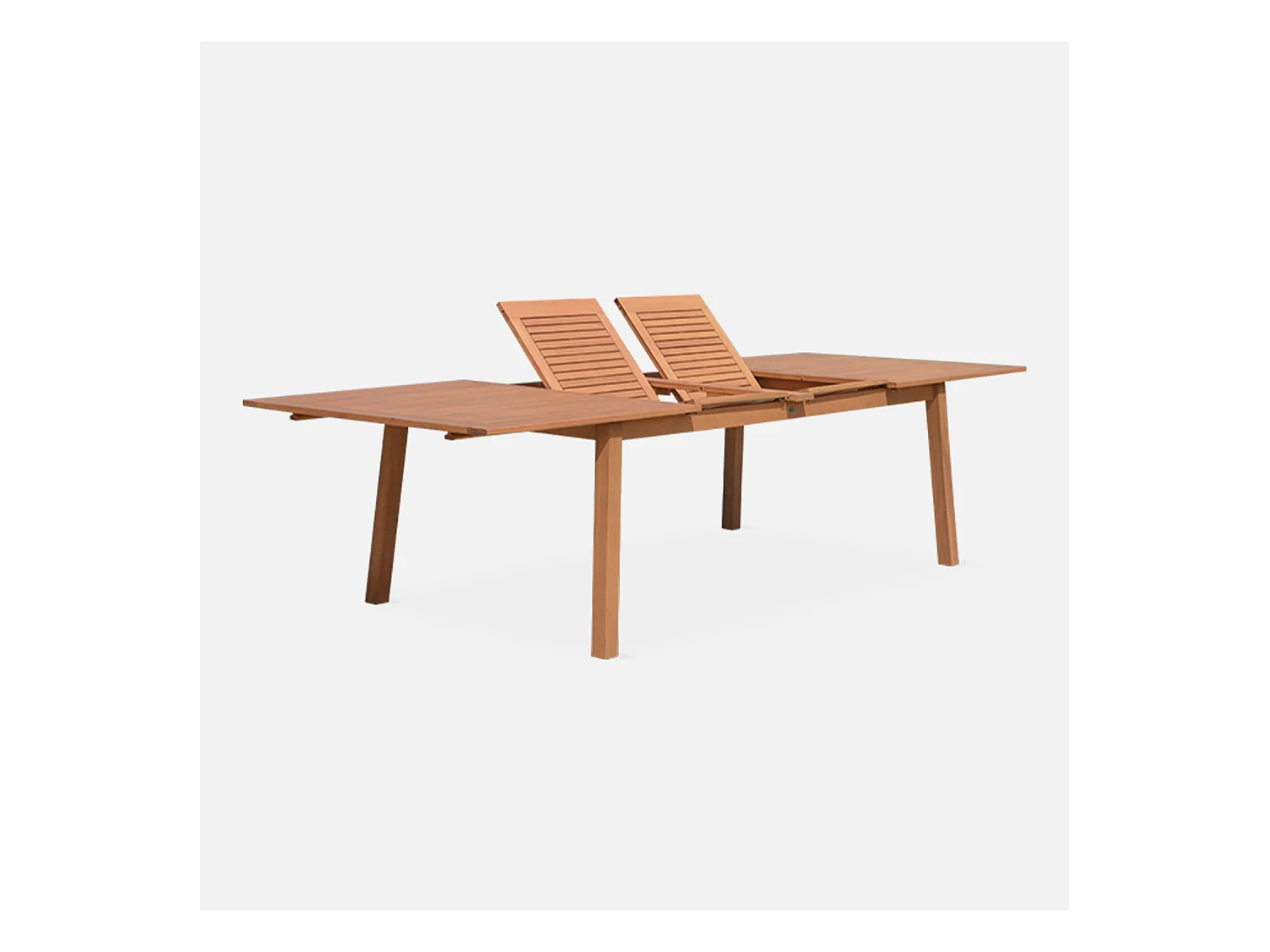 Tavolo da giardino rettangolare allungabile in legno,12 posti, marrone