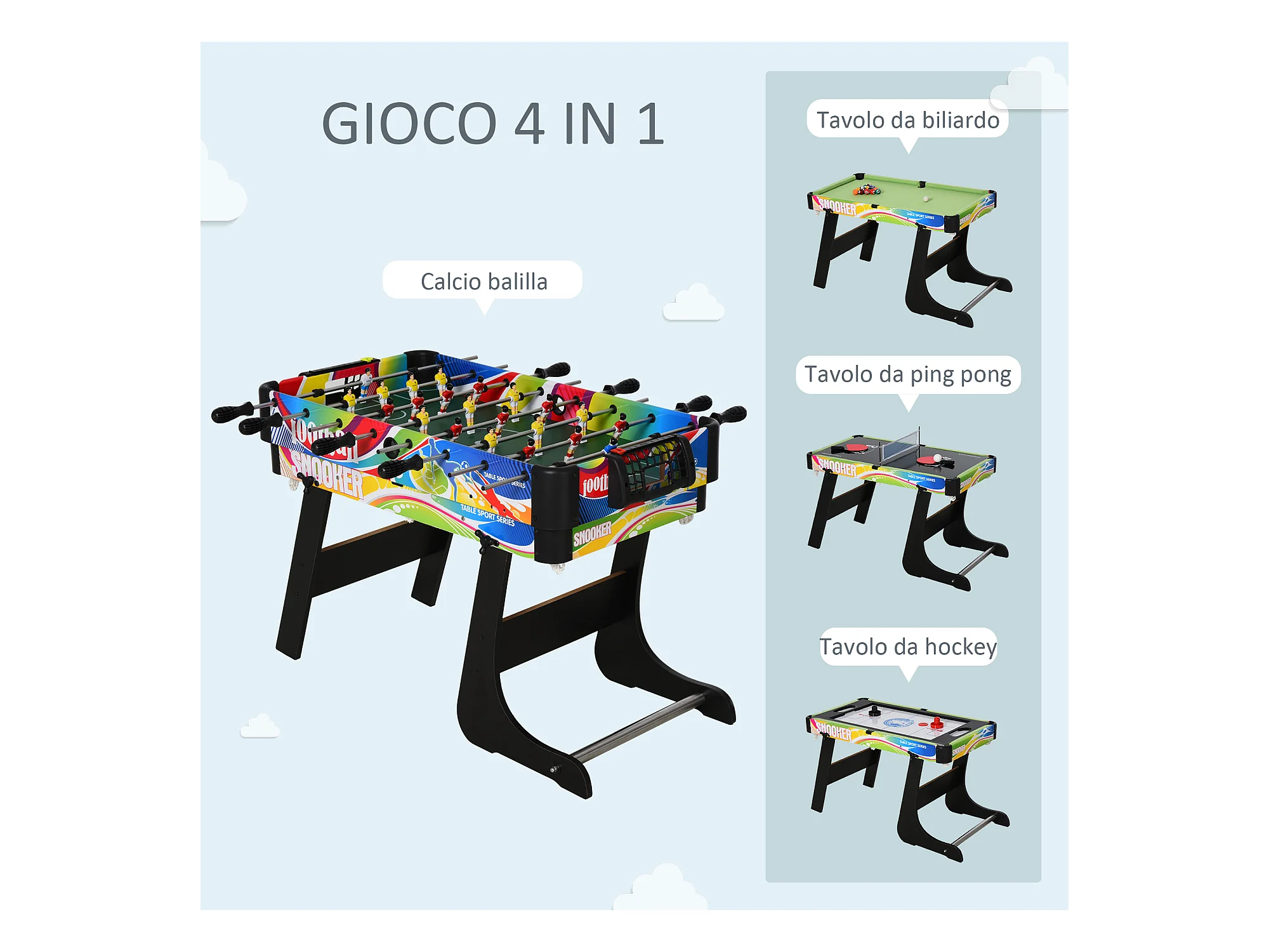 Tavolo multigioco 4 in 1 con calciobalilla biliardo ping pong hockey