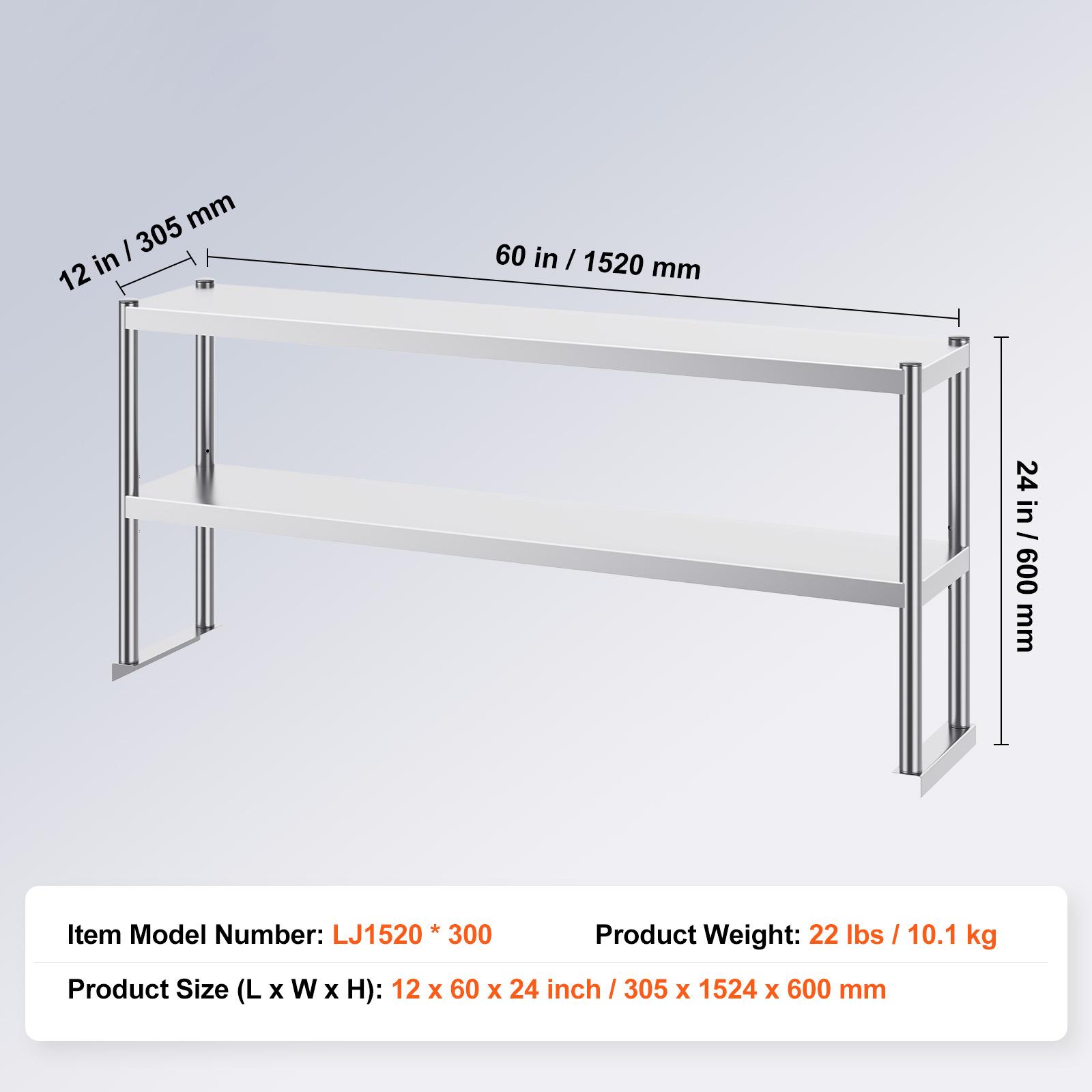 Tavolo da Lavoro Doppio con 2 Livelli SucceBuy, 305 x 1524 mm in Acciaio, Inox per Tavolo di Preparazione