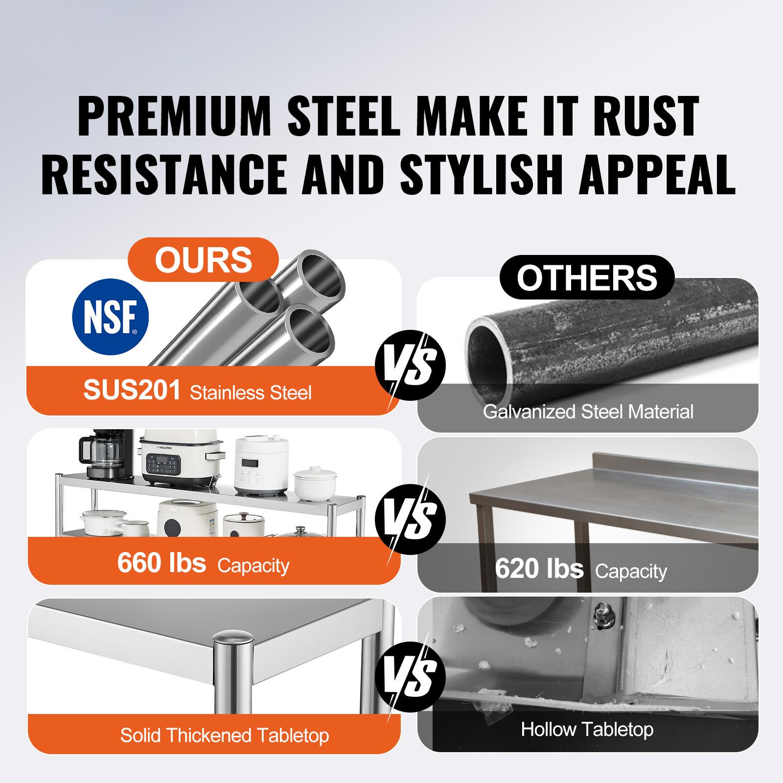 Tavolo da Lavoro in Acciaio Inox SucceBuy, 610 x 711 x 660 mm, Tavolo Commerciale per la Preparazione degli Alimenti per Ristorante