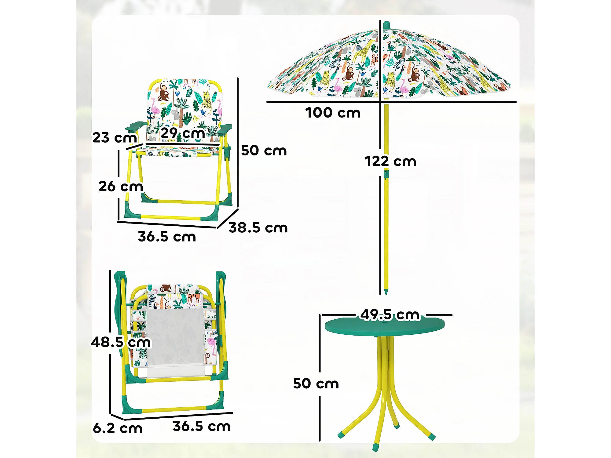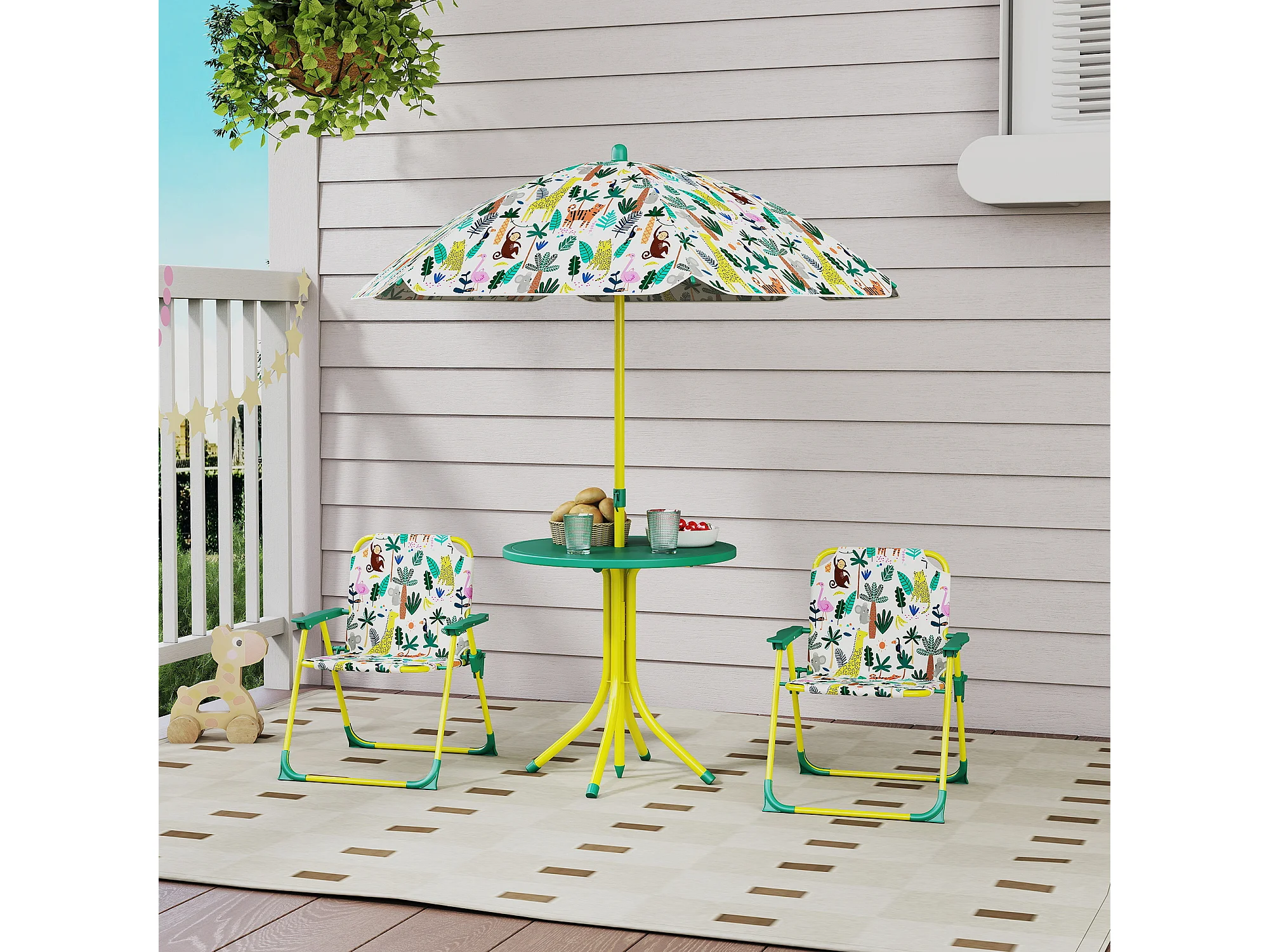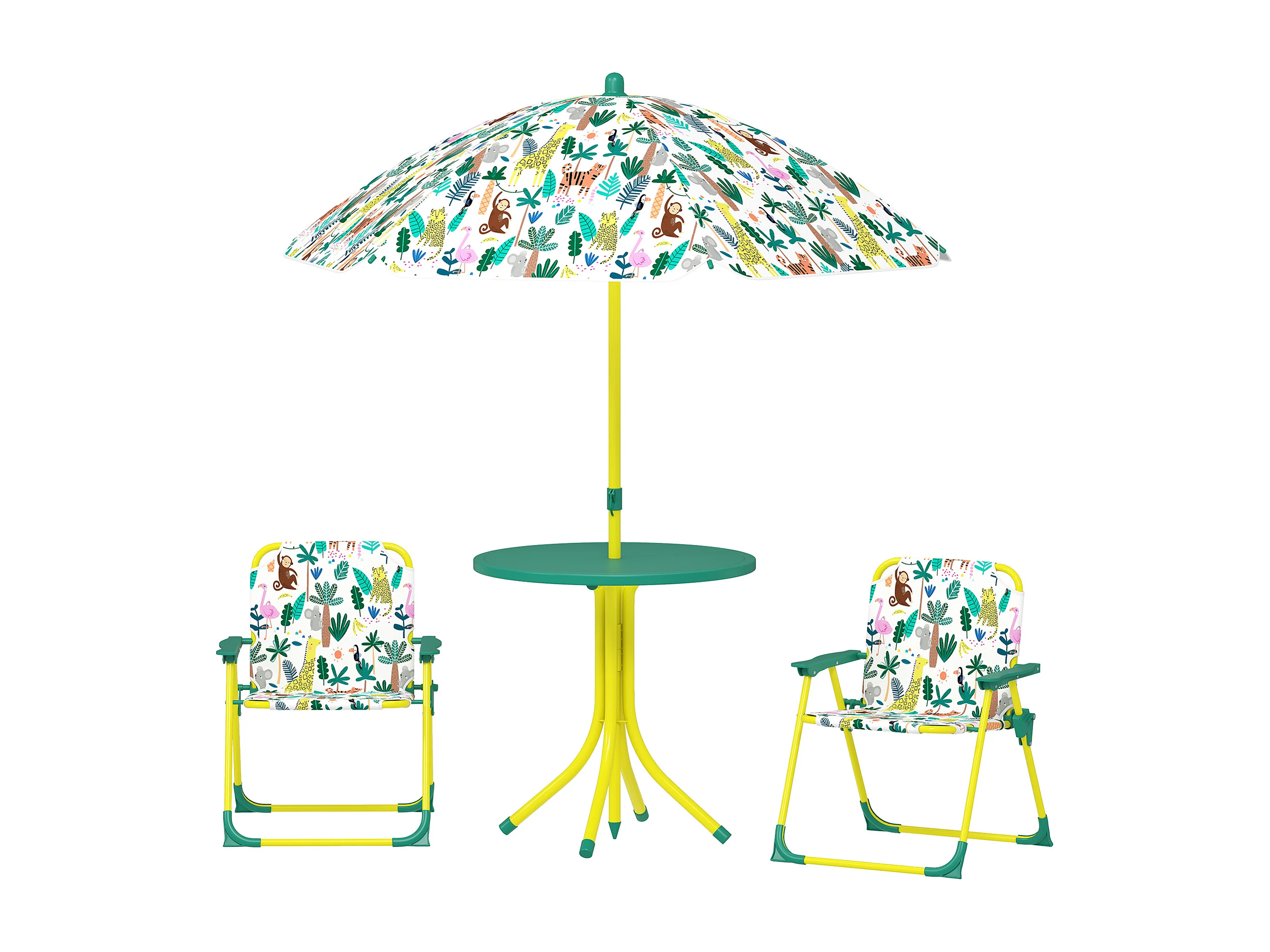 Tavolo da picnic bambini con ombrellone in metallo e poliestere verde