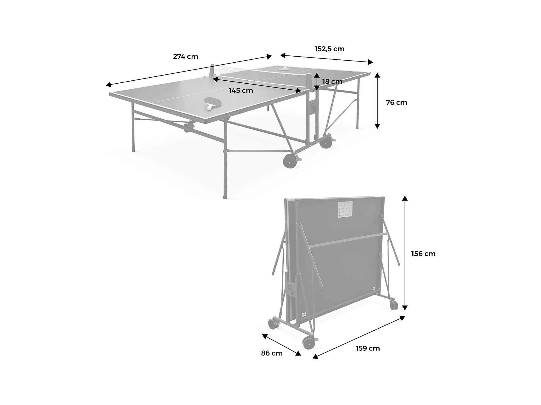 Tavolo da ping pong pieghevole a rotelle, per interno con accessori L274 x P152,5 x H76 cm - GARRY