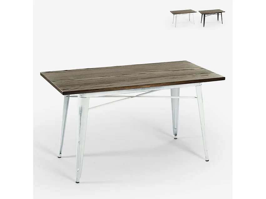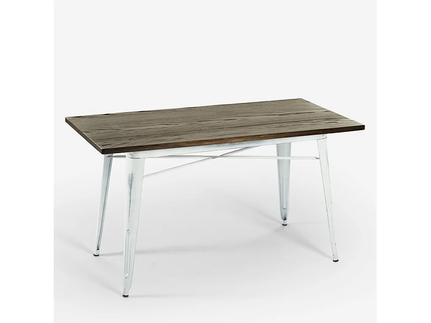 Tavolo da pranzo 120x60 industriale legno metallo vintage Caupona Brush - Bianco