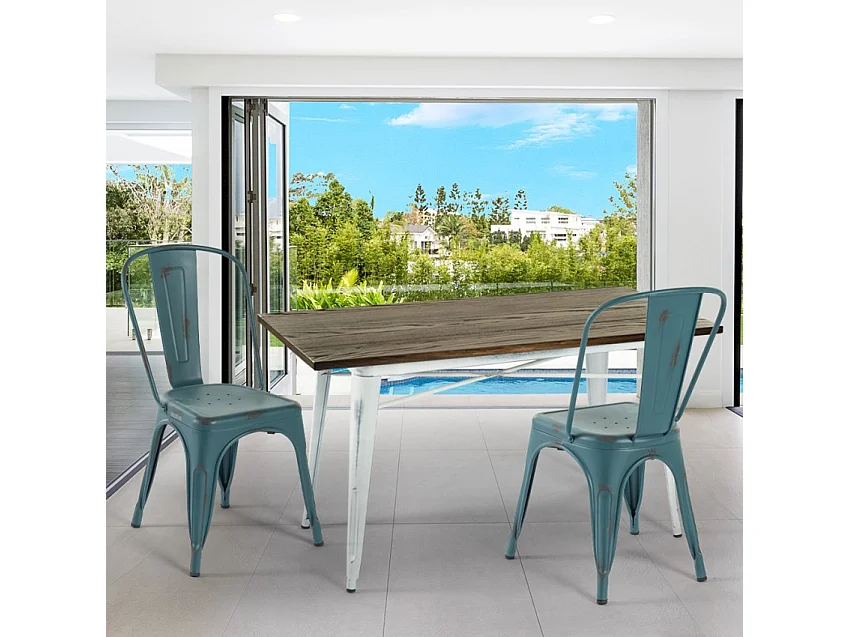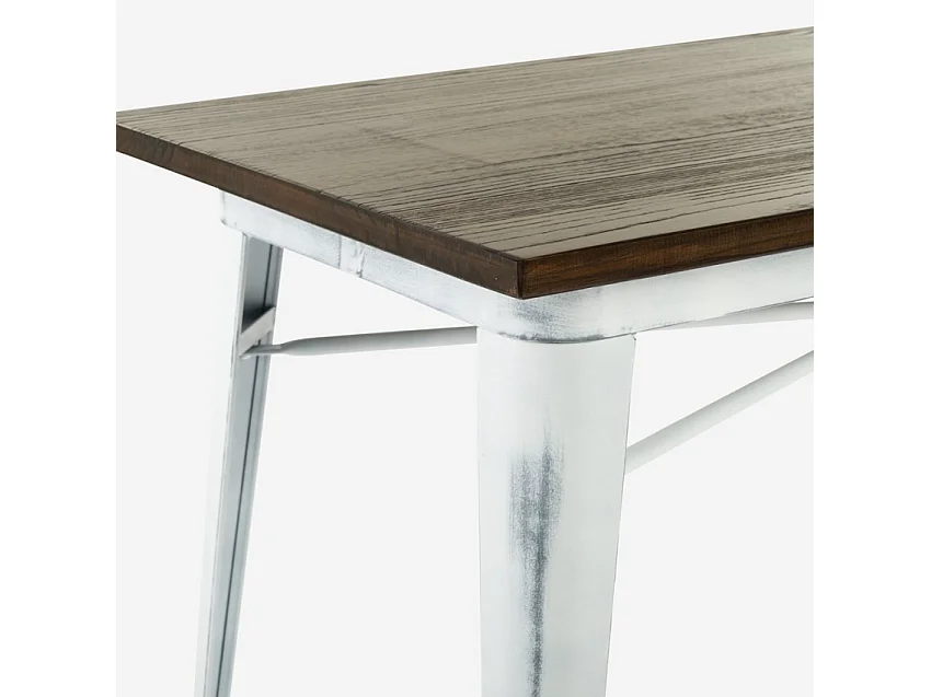 Tavolo bar alto sgabelli vintage industriale 120x60x106 Catal Brush - Bianco