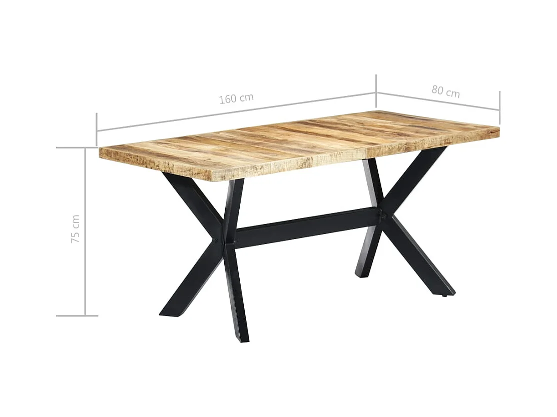 Tavolo da Pranzo 160x80x75 cm in Legno Massello di Mango Grezzo