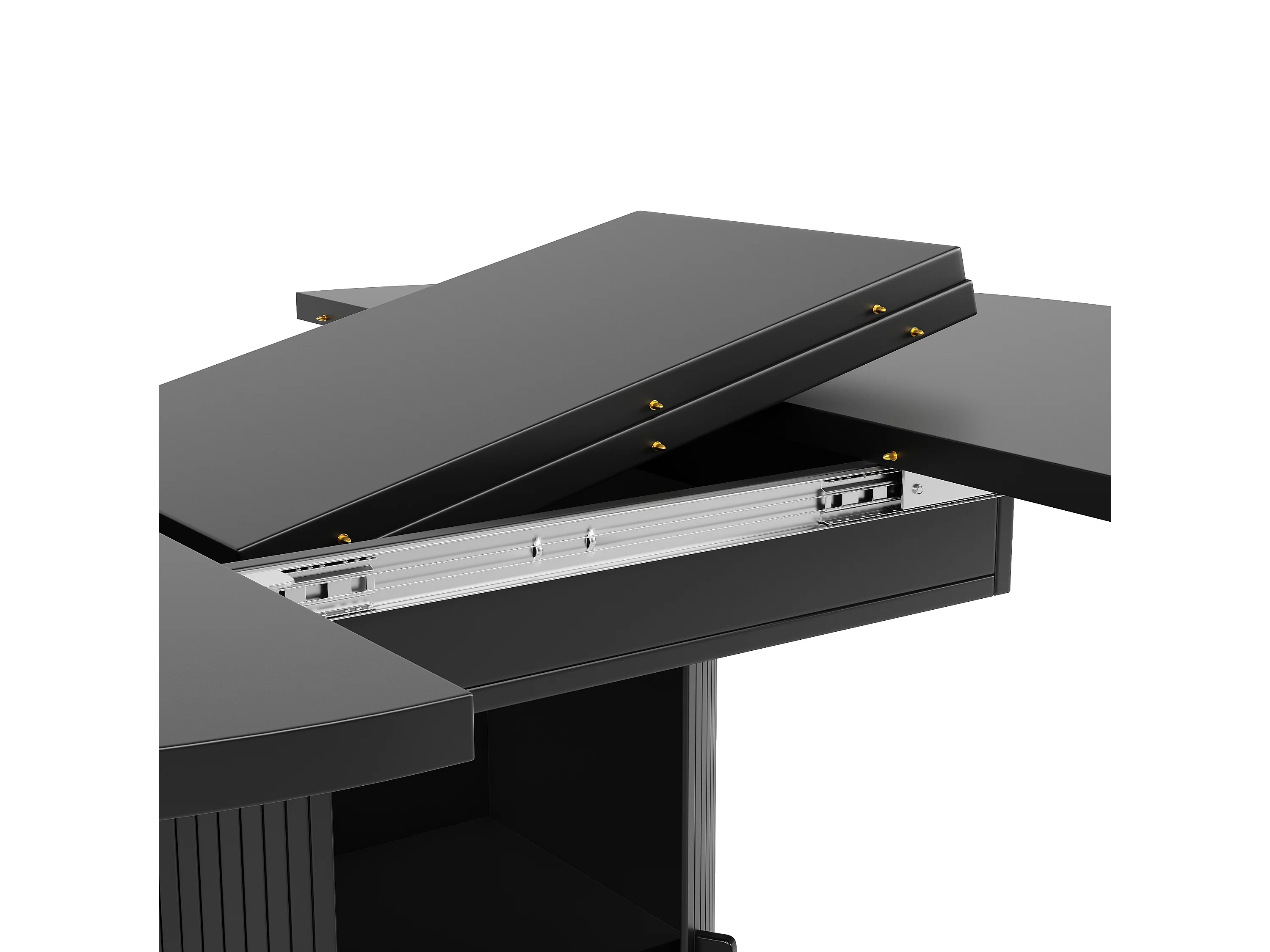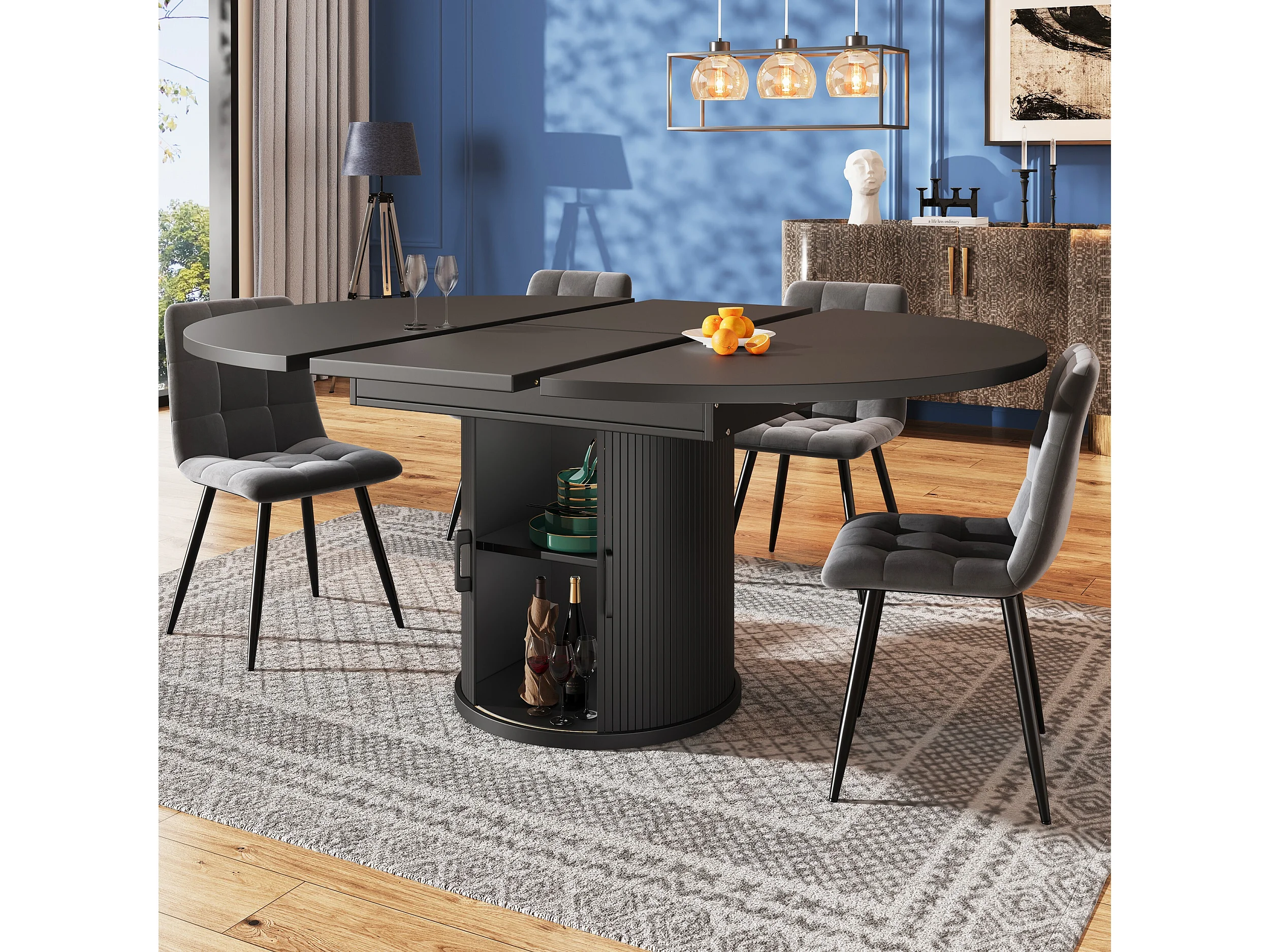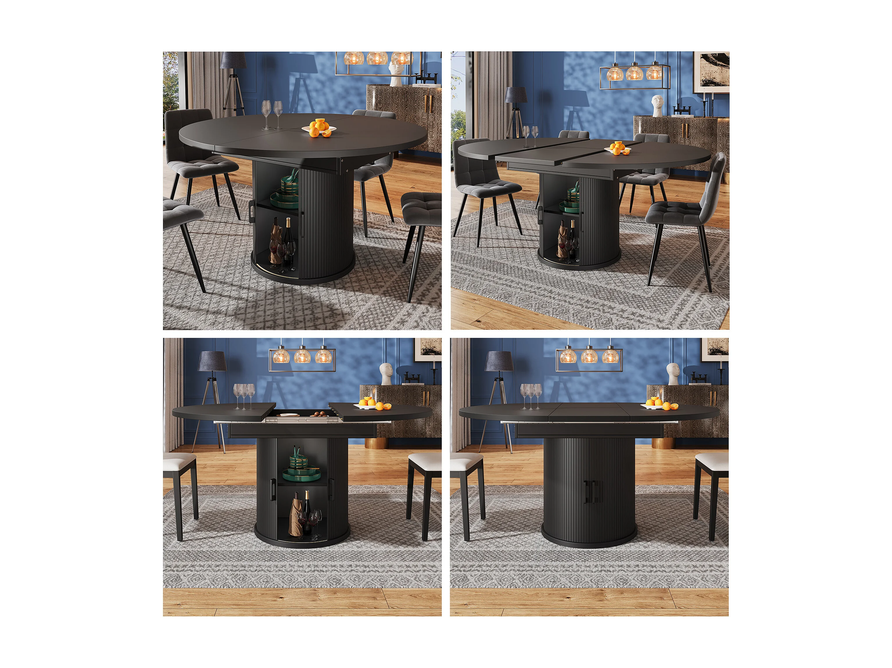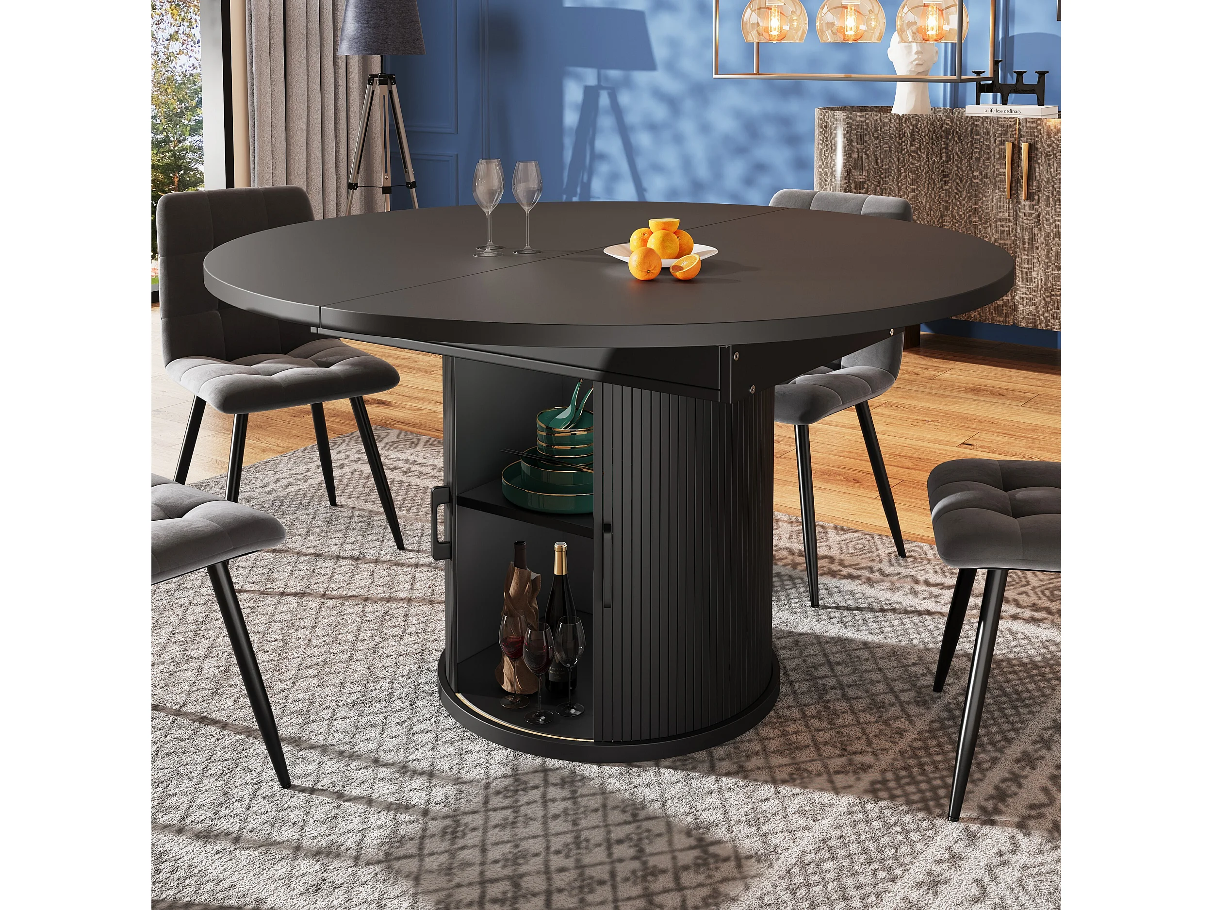 Tavolo da pranzo allungabile, 118-158 cm, nero, tavolo rotondo con contenitore