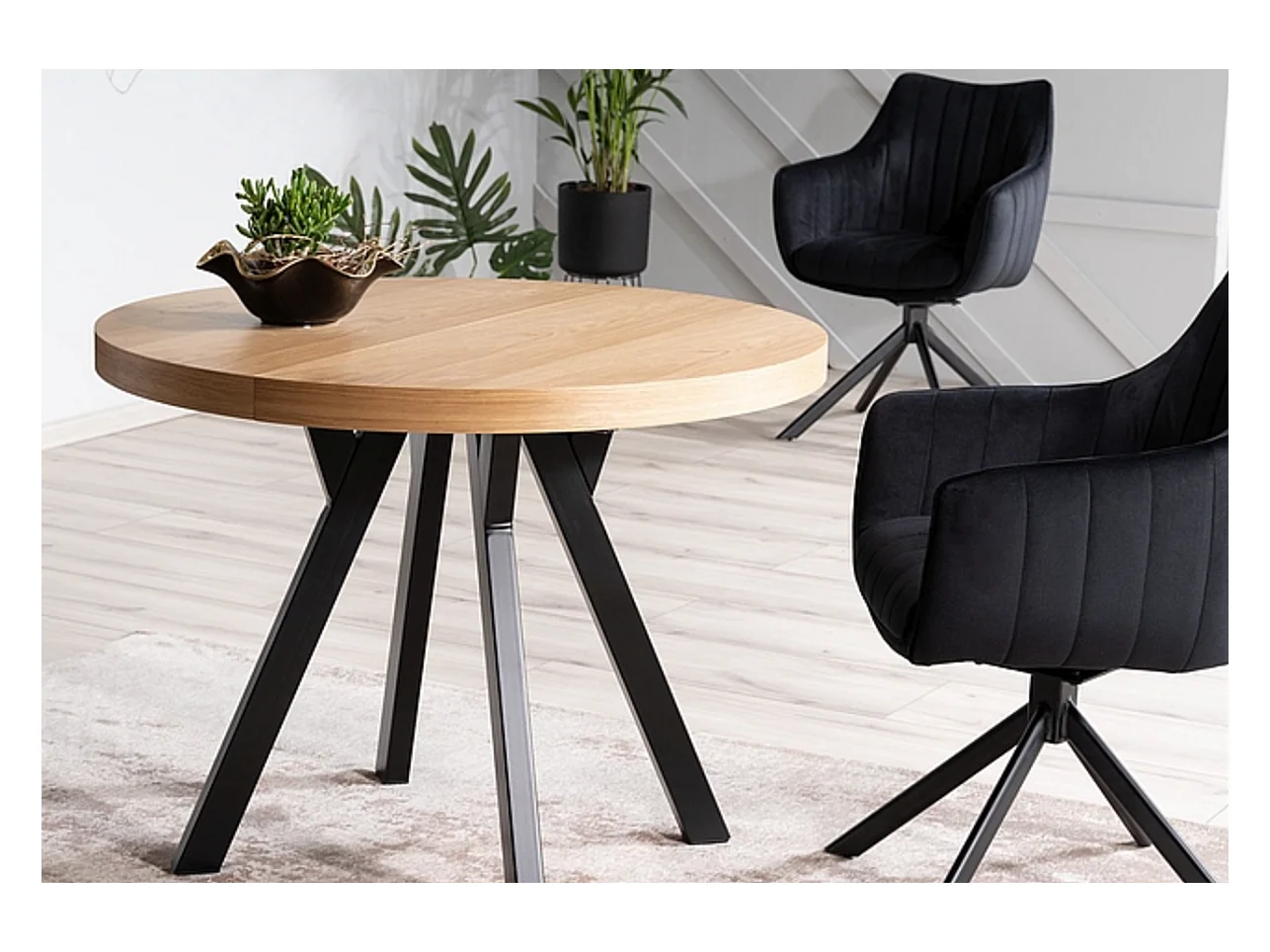 Tavolo da pranzo rotondo allungabile in metallo e legno impiallacciato 100 cm Astra