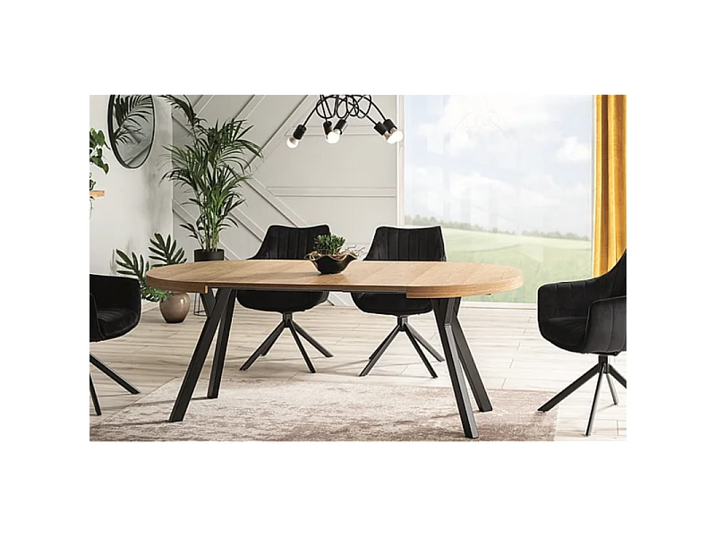 Tavolo design allungabile nero con piano impiallacciato rovere 160-250 cm MISTY
