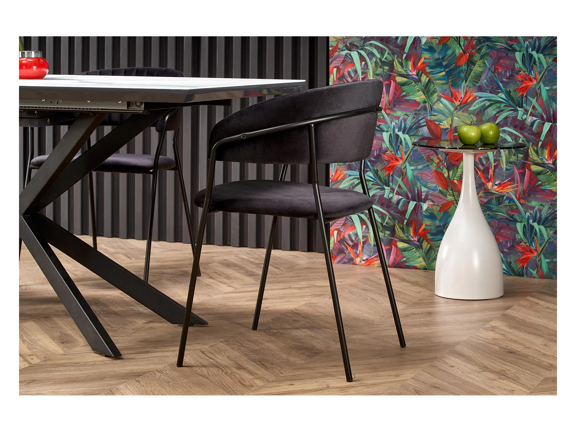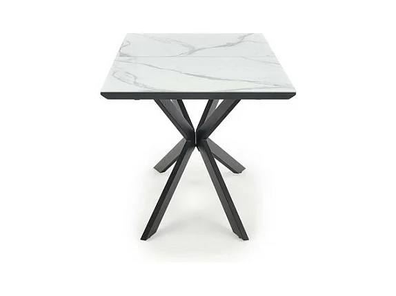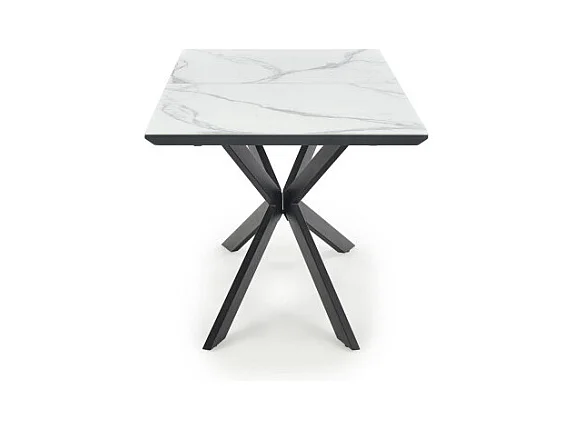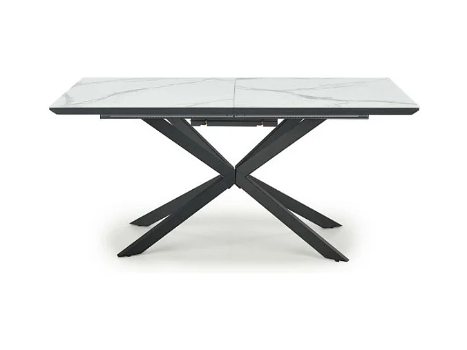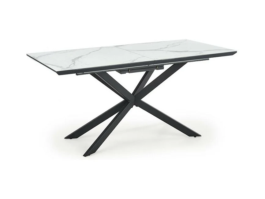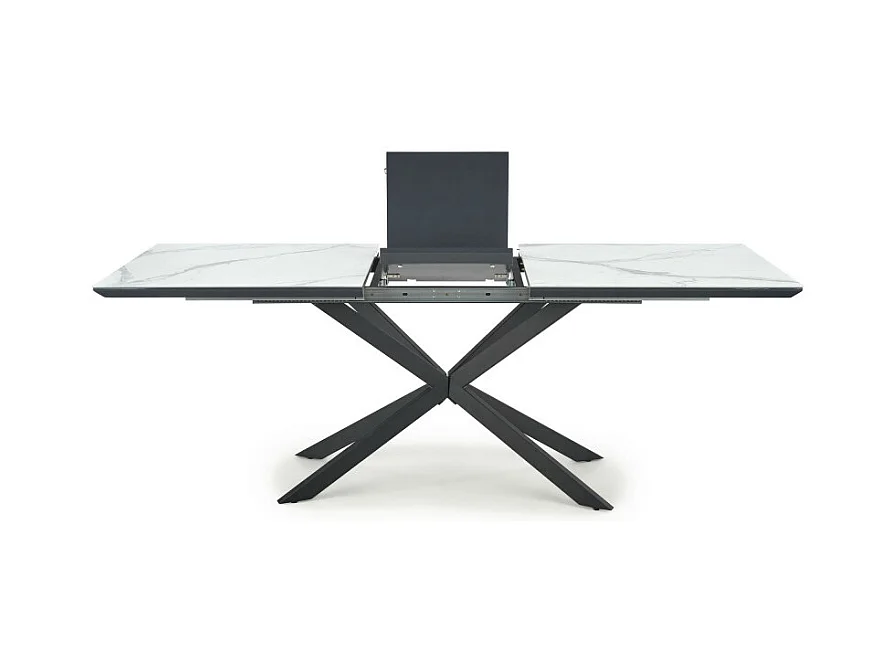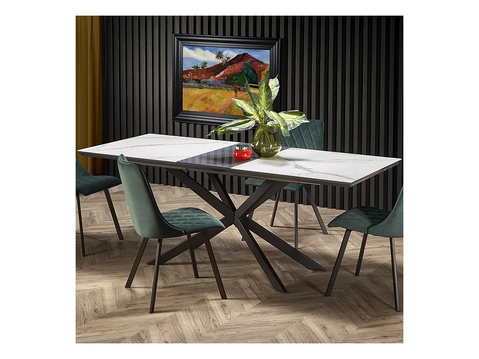 Tavolo da pranzo allungabile ODUNA con piano in marmo e gamba centrale in metallo nero