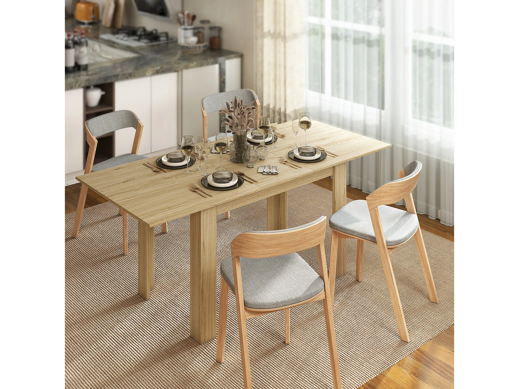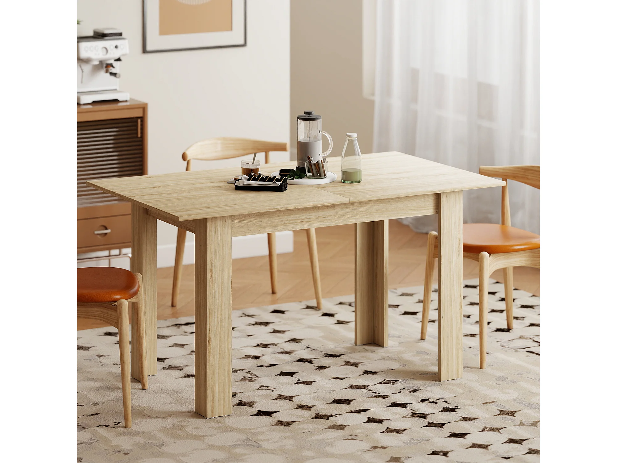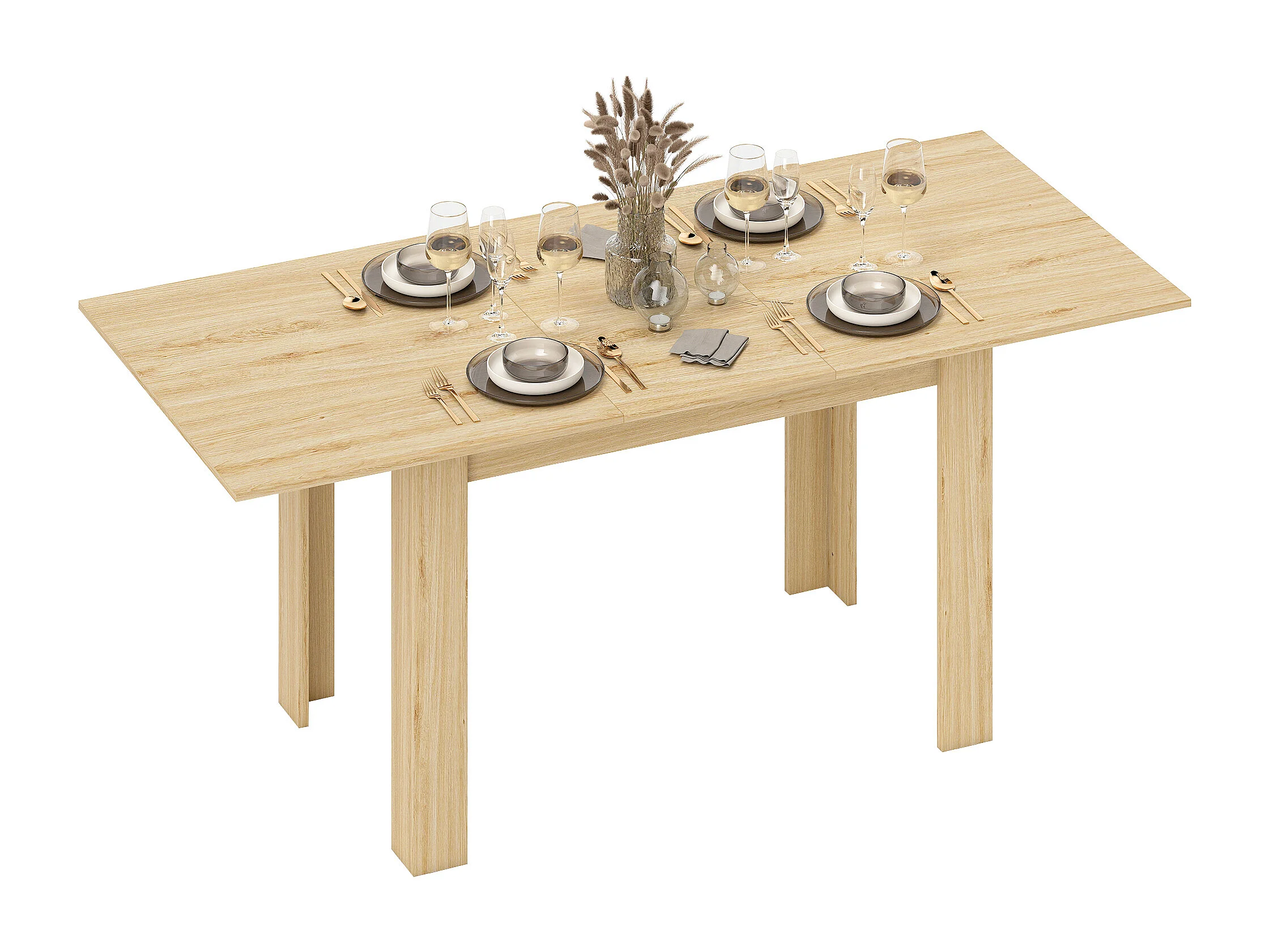 Tavolo da pranzo allungabile in MDF - 120/160 x 80 cm - adatto da 4 a 6 persone - Naturale