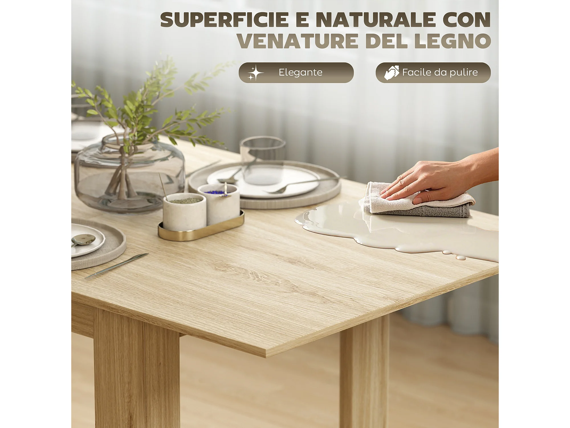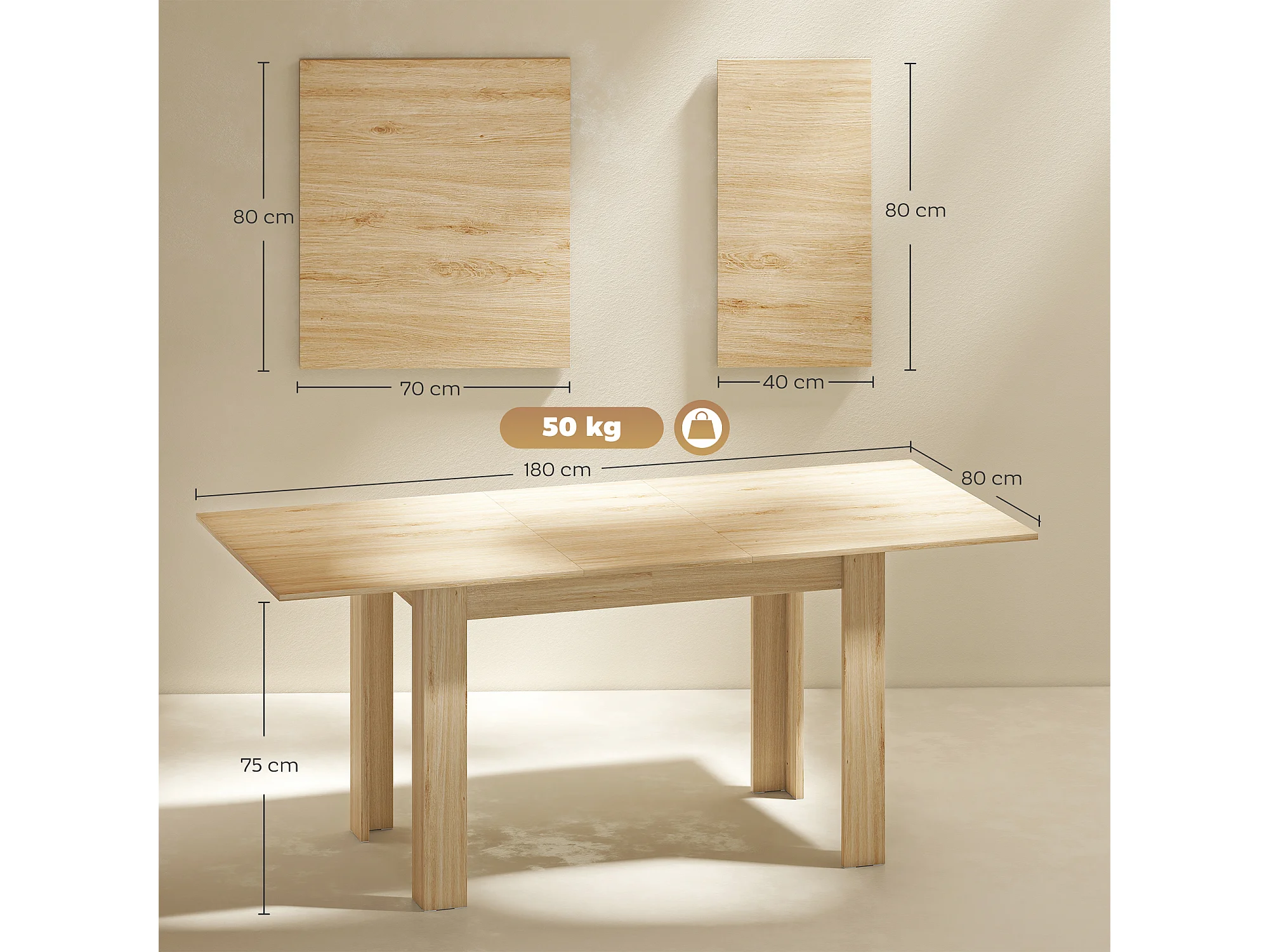 Tavolo da pranzo pieghevole in MDF - 120 x 80 cm - adatto per 4-6 persone - Colore naturale