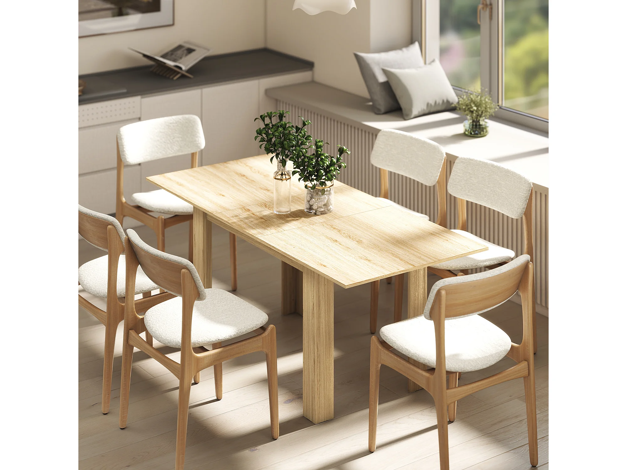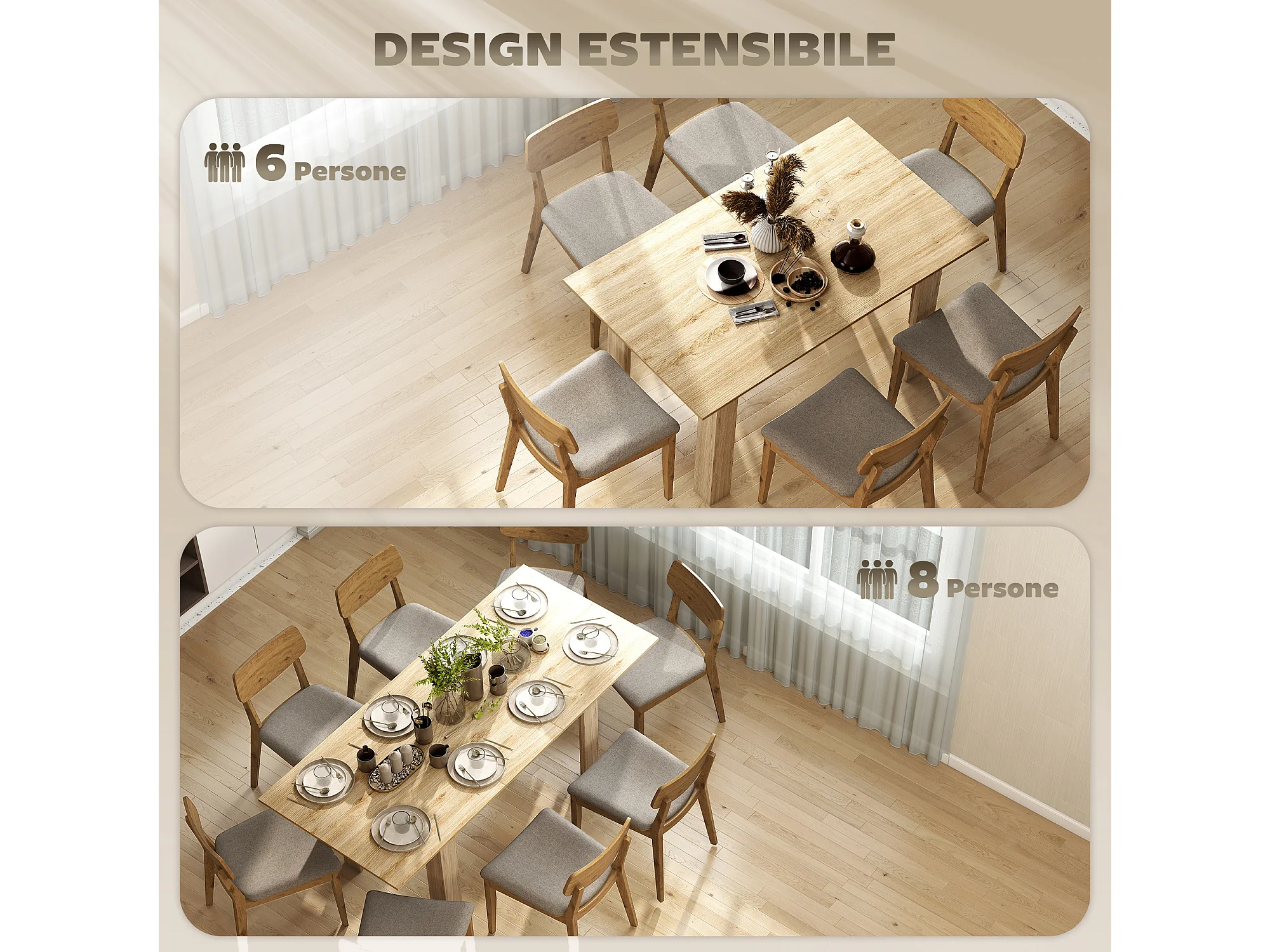 Tavolo da pranzo allungabile per 6-8 persone con pannelli a ribalta