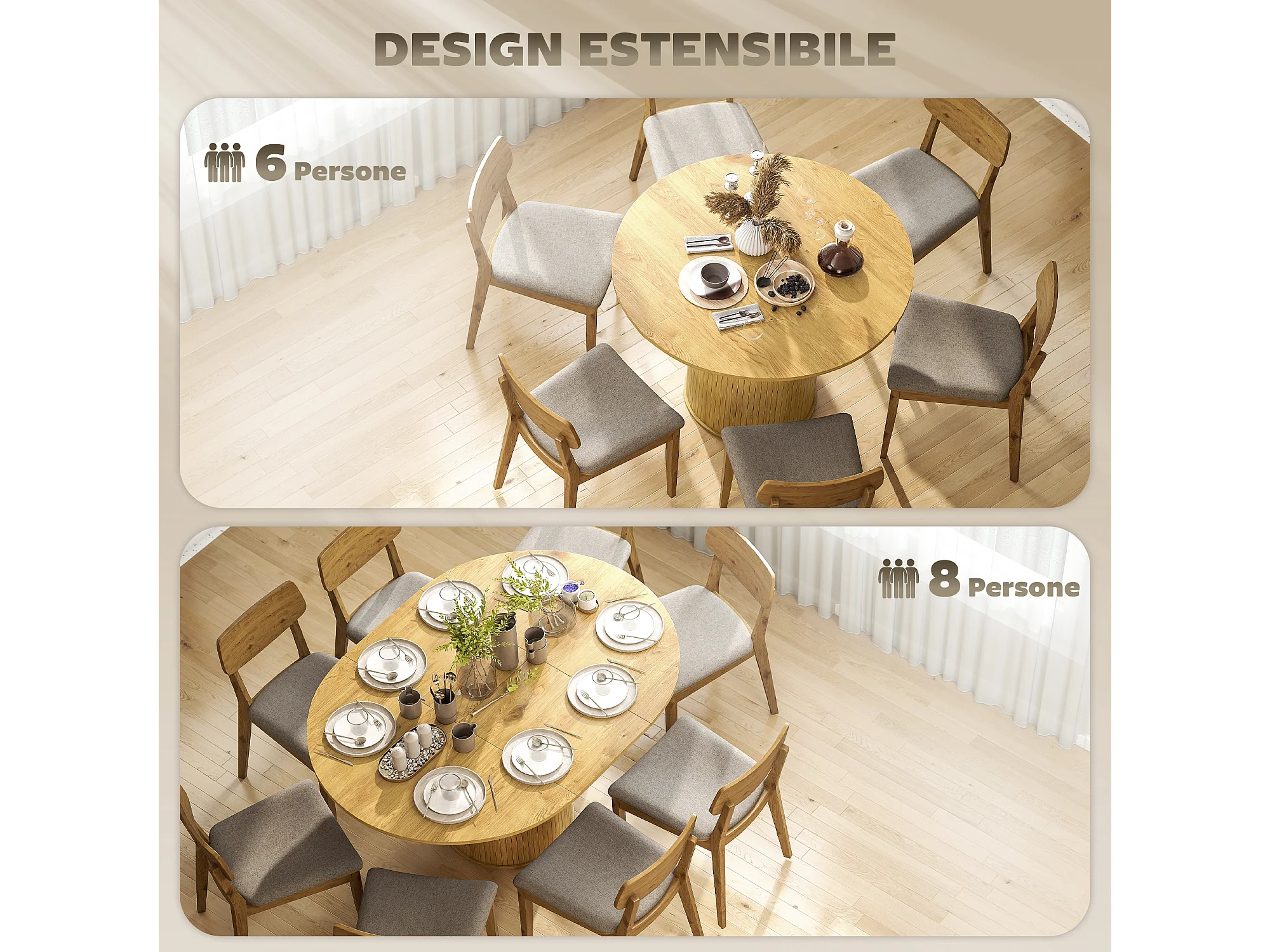 Tavolo da pranzo allungabile per 6-8 persone con pannelli rimovibili