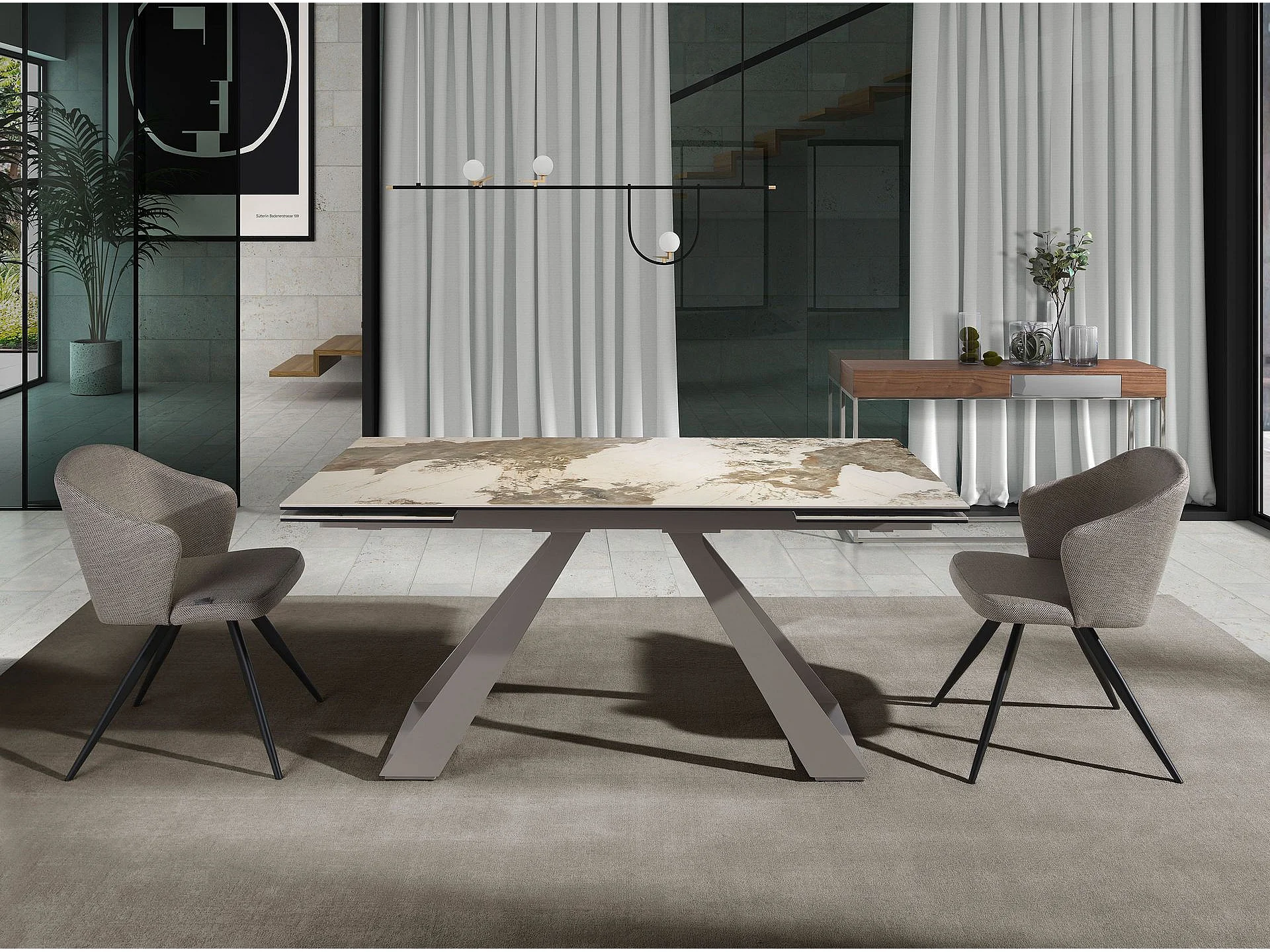 Tavolo da pranzo rettangolare allungabile in marmo porcellanato e acciaio grigio tortora 1124 ANGEL CERDA