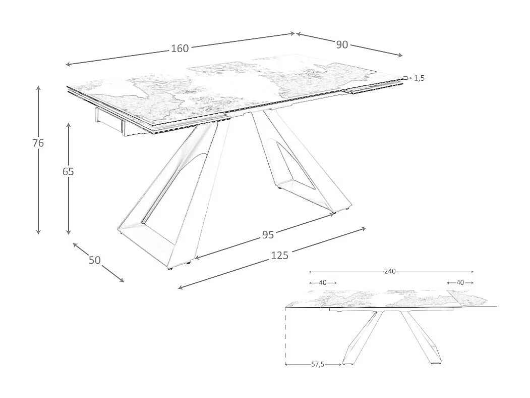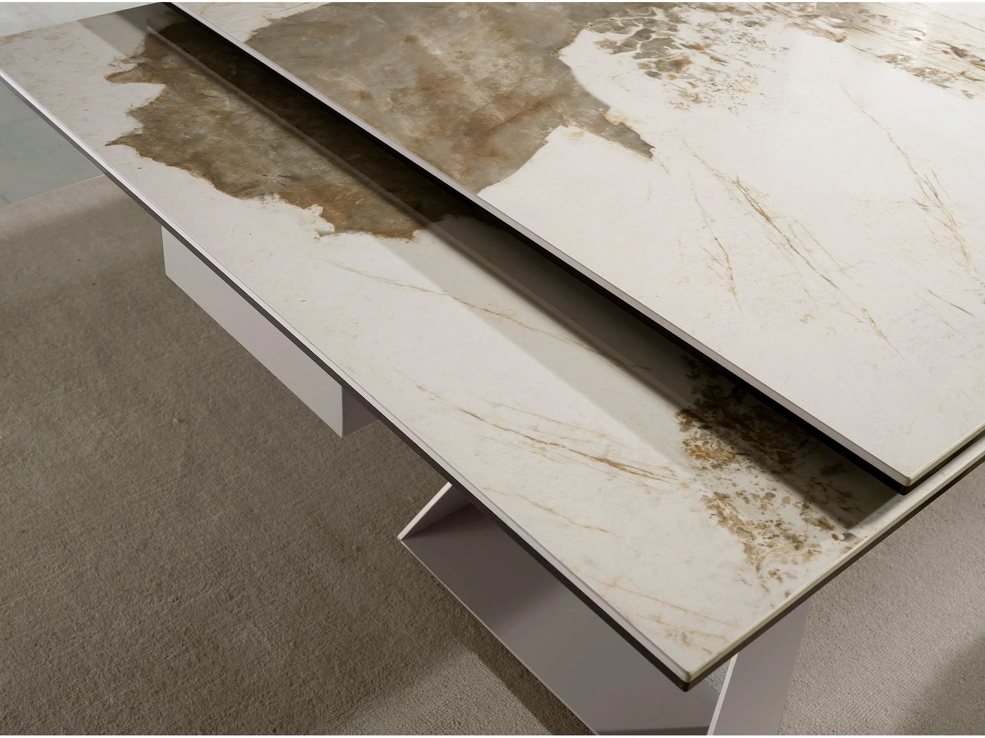 Tavolo da pranzo rettangolare allungabile in marmo porcellanato e acciaio grigio tortora 1117 ANGEL CERDA