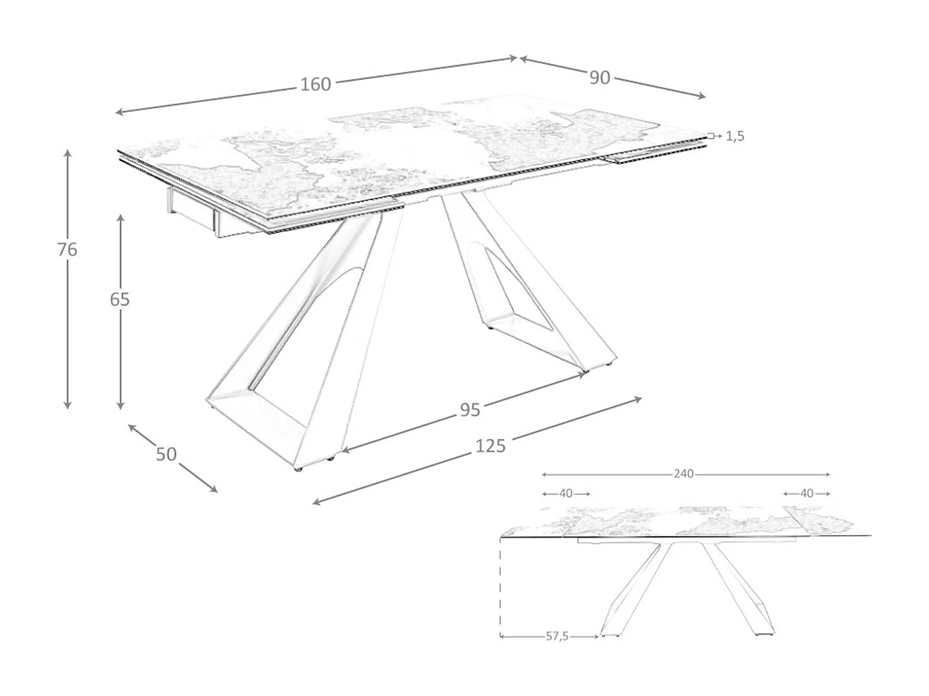 Tavolo da pranzo allungabile rettangolare marmo porcellanato e acciaio nero 1014 ANGEL CERDA