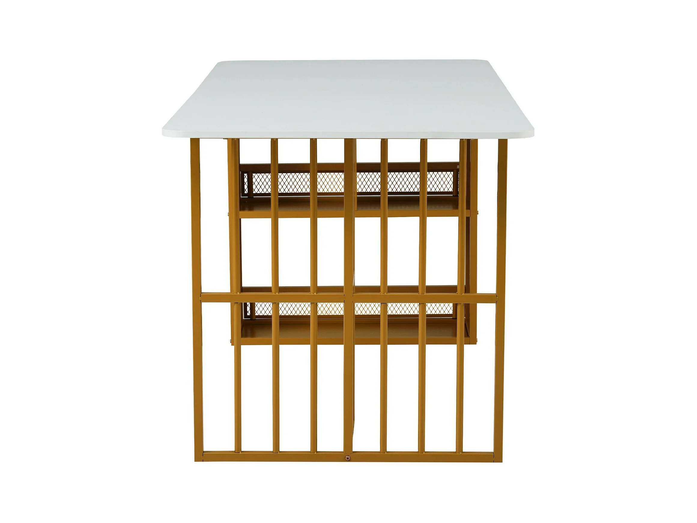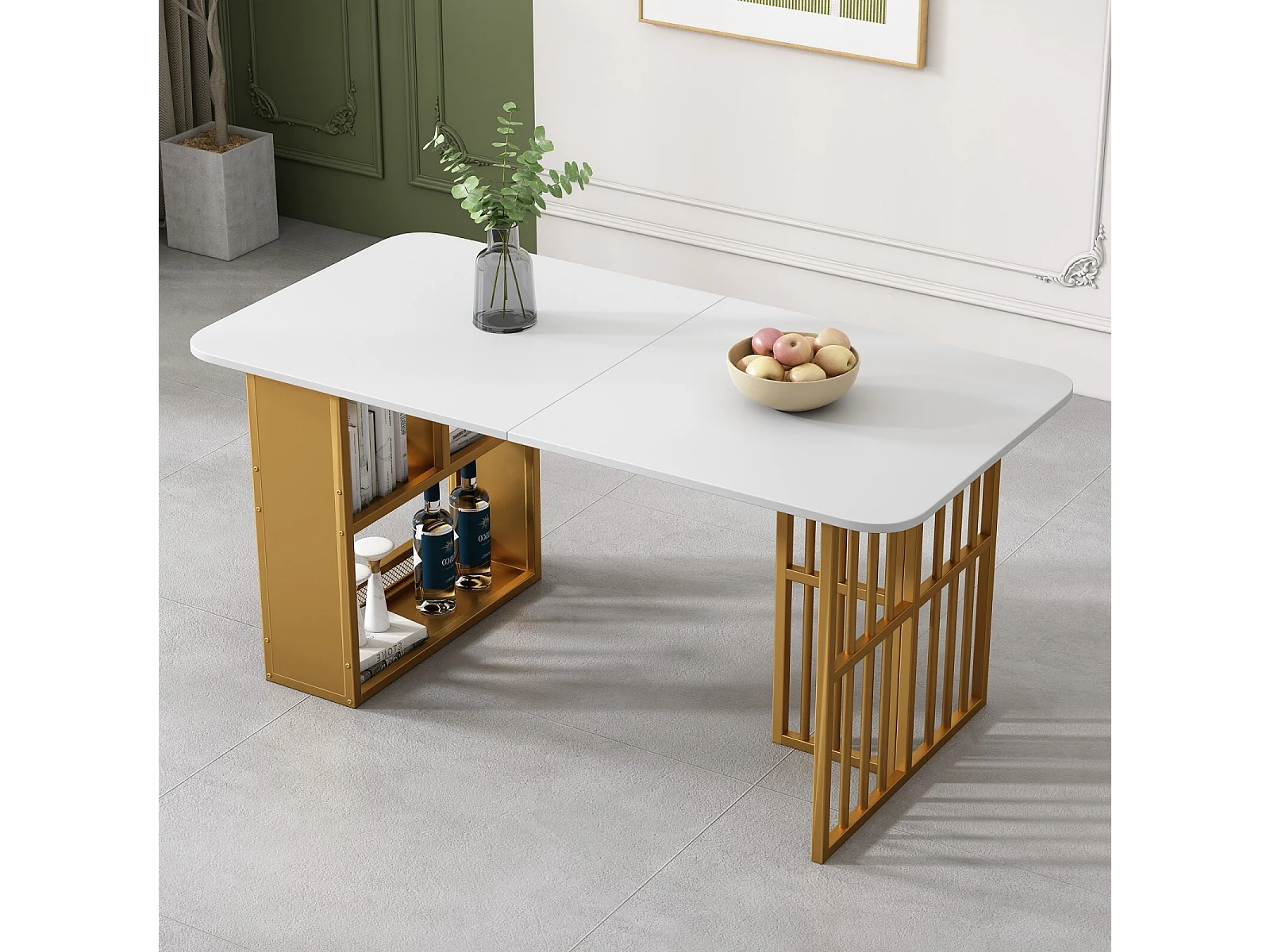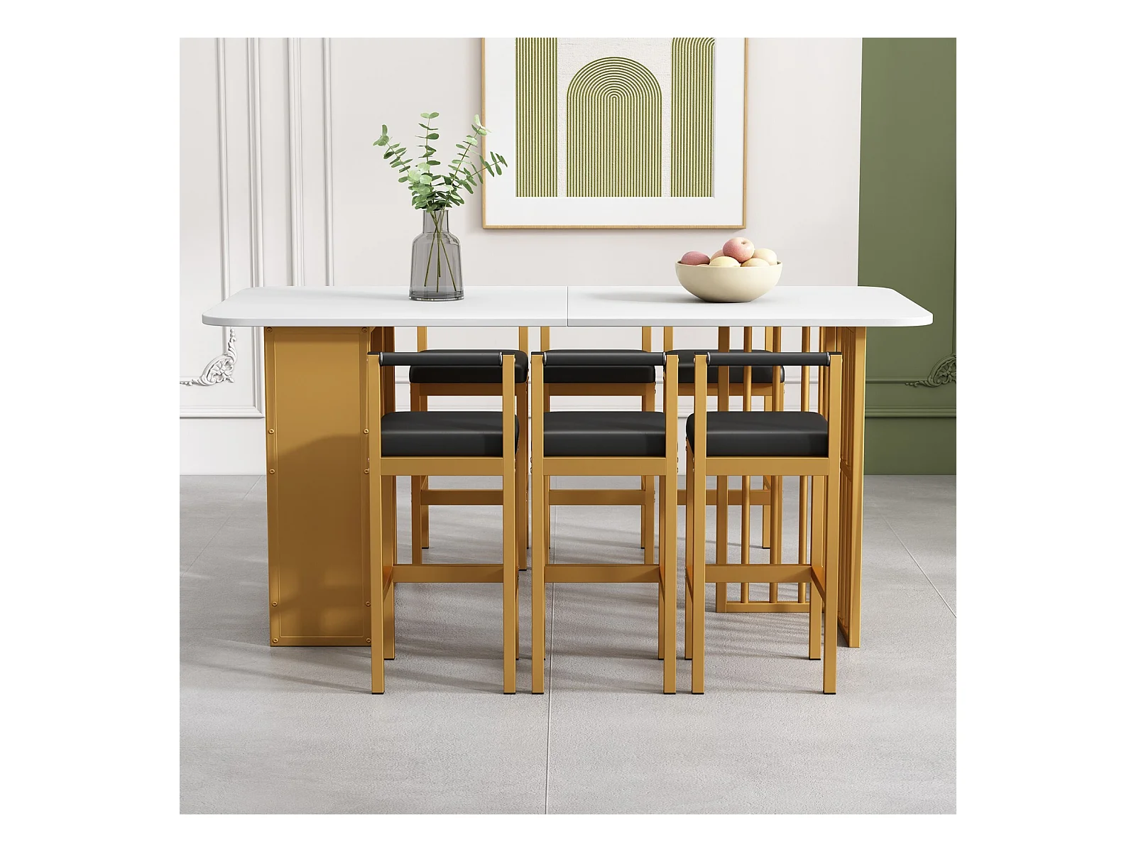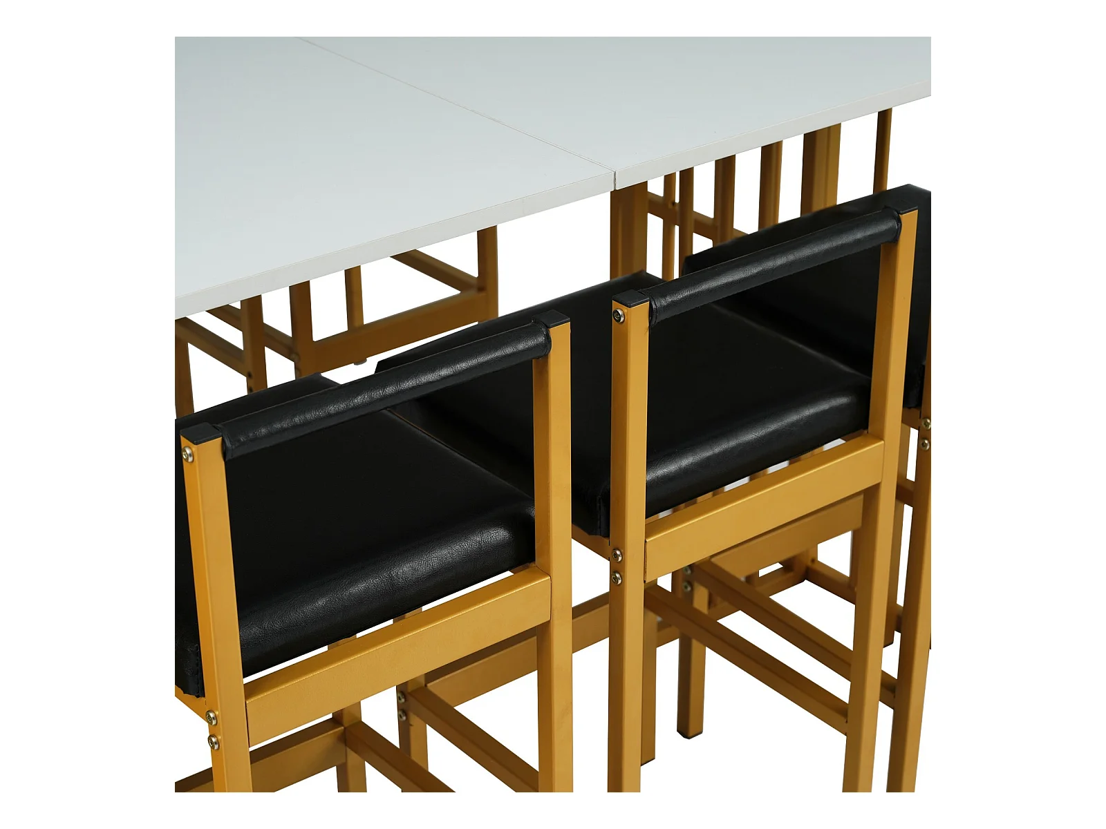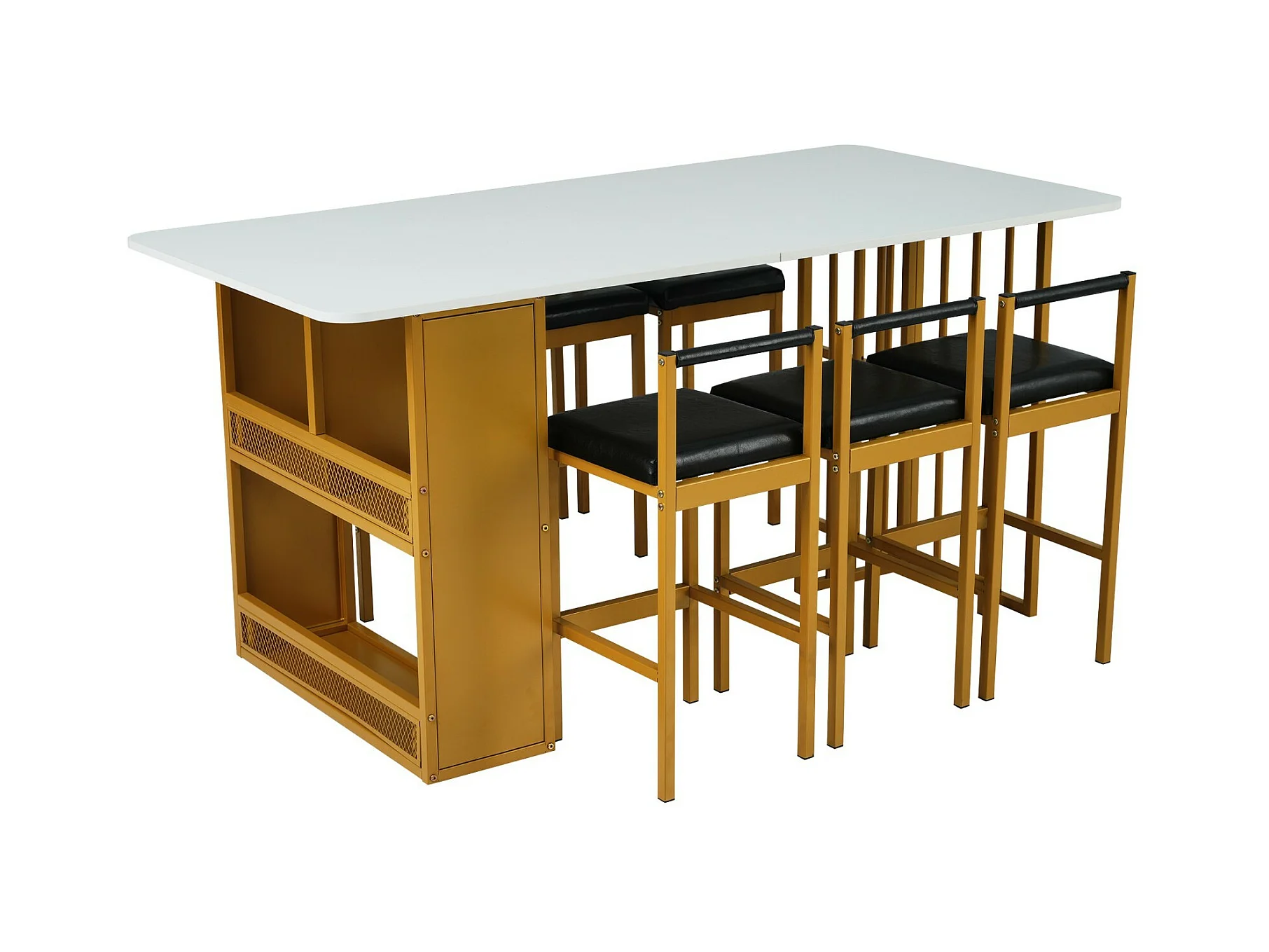 Tavolo da pranzo con ripiani di stoccaggio e sgabelli da 6 bar - design di lusso - pannelli di particelle - 156x78x78 cm - bianco e oro