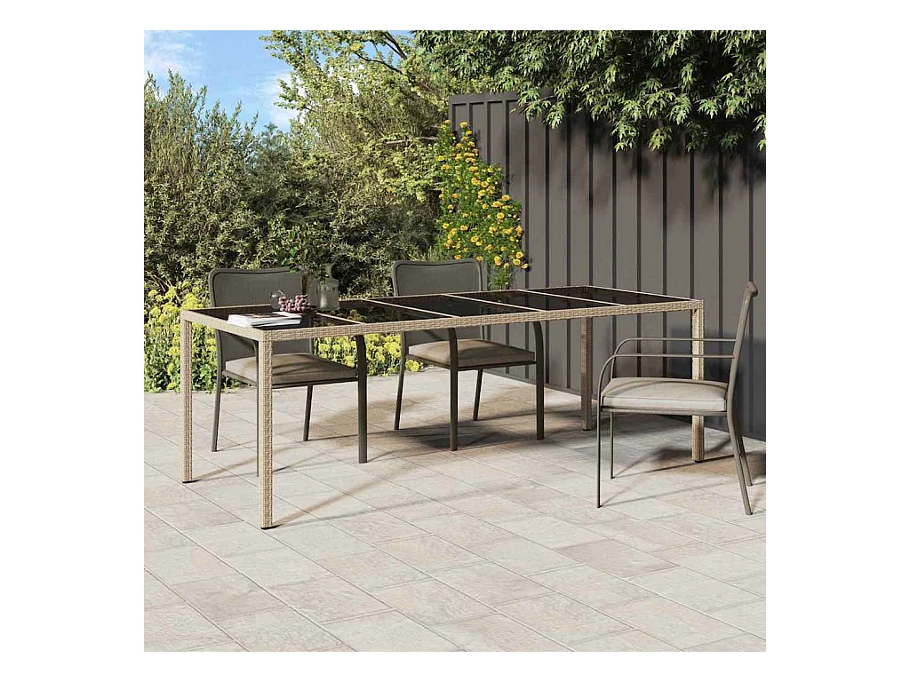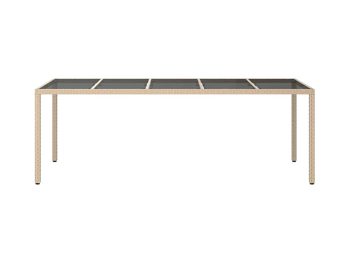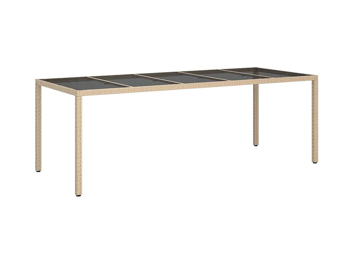 Tavolo Giardino Beige 190x90x75 cm Vetro Temperato Polyrattan