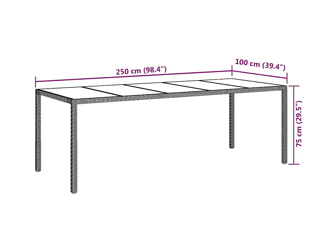 Tavolo da pranzo da giardino Beige 250 x 100 x 75 cm Polyrattan