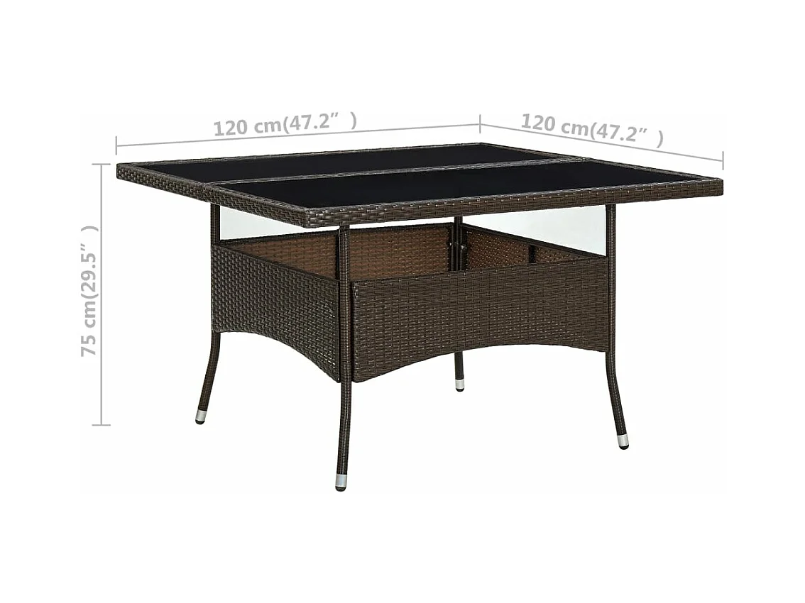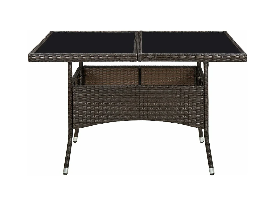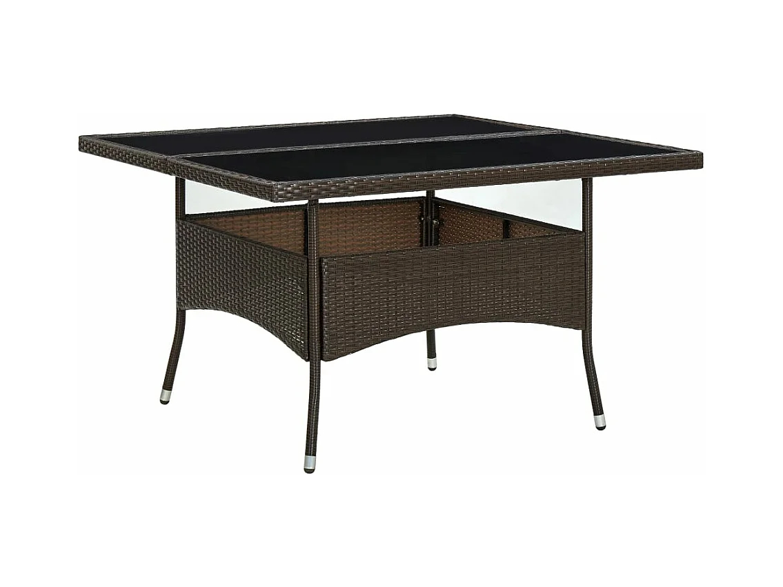 Tavolo da Pranzo da Giardino Marrone in Polyrattan e Vetro