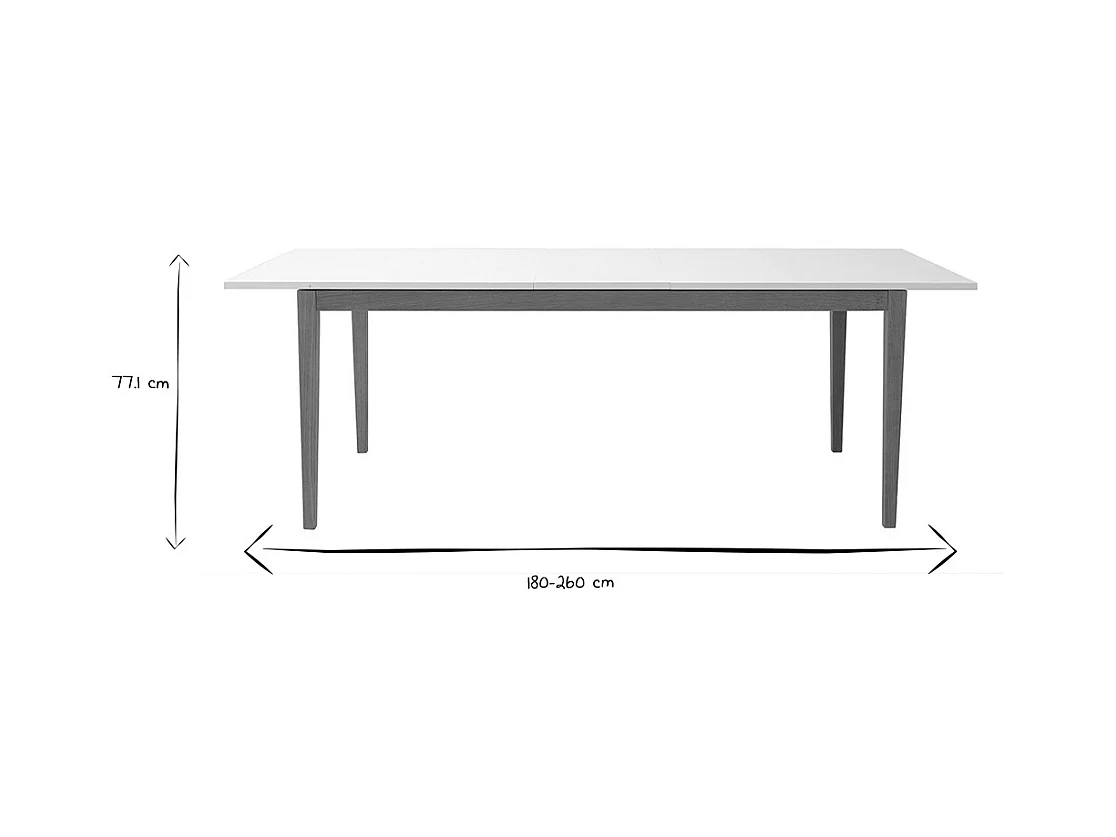 Tavolo da pranzo design allungabile bianco gambe in legno L180-260 DELAH