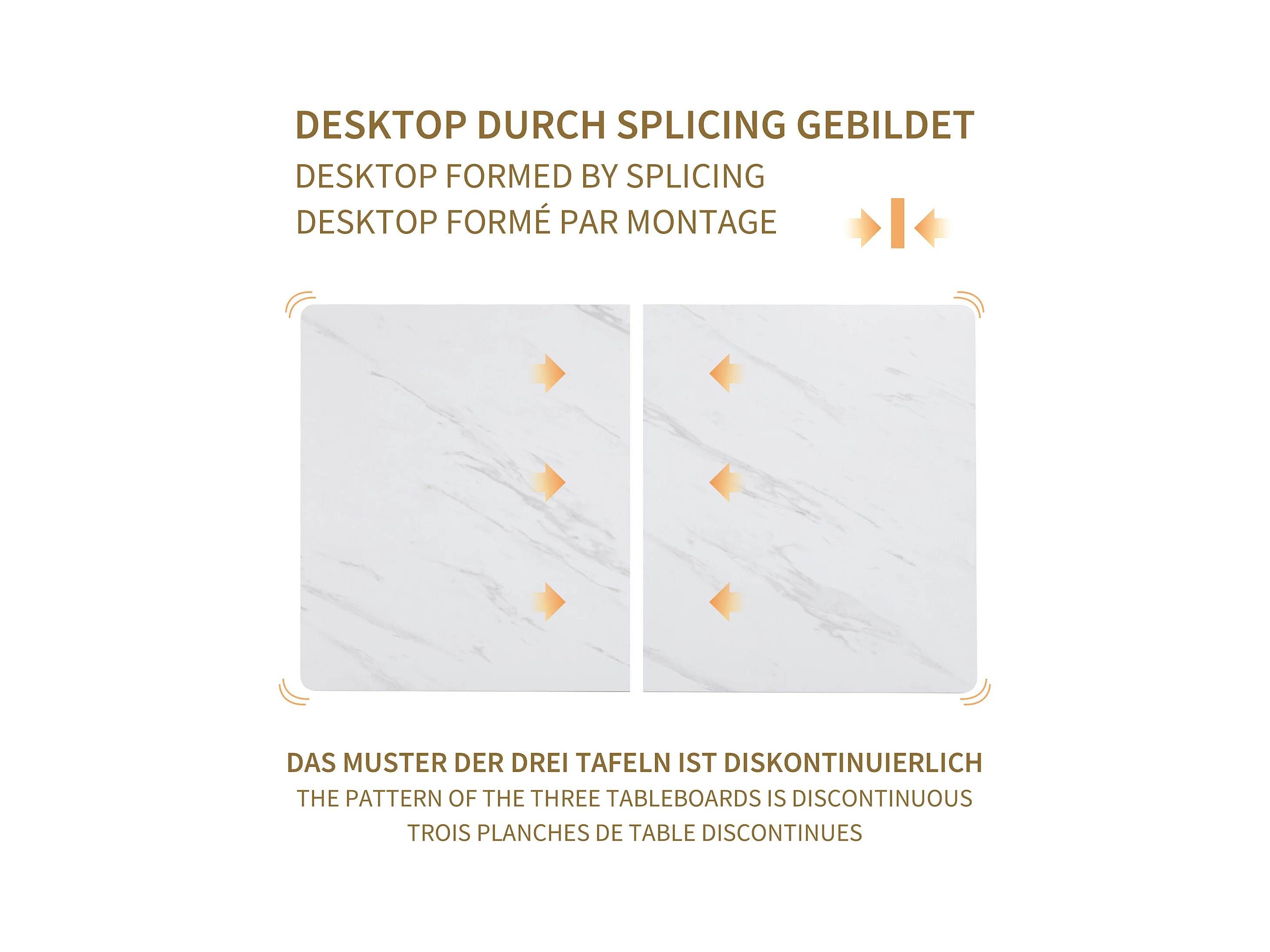 Tavolo da pranzo moderno 140x80cm, MDF bianco con gambe in metallo dorato, piano in marmo (140x80x75 cm)