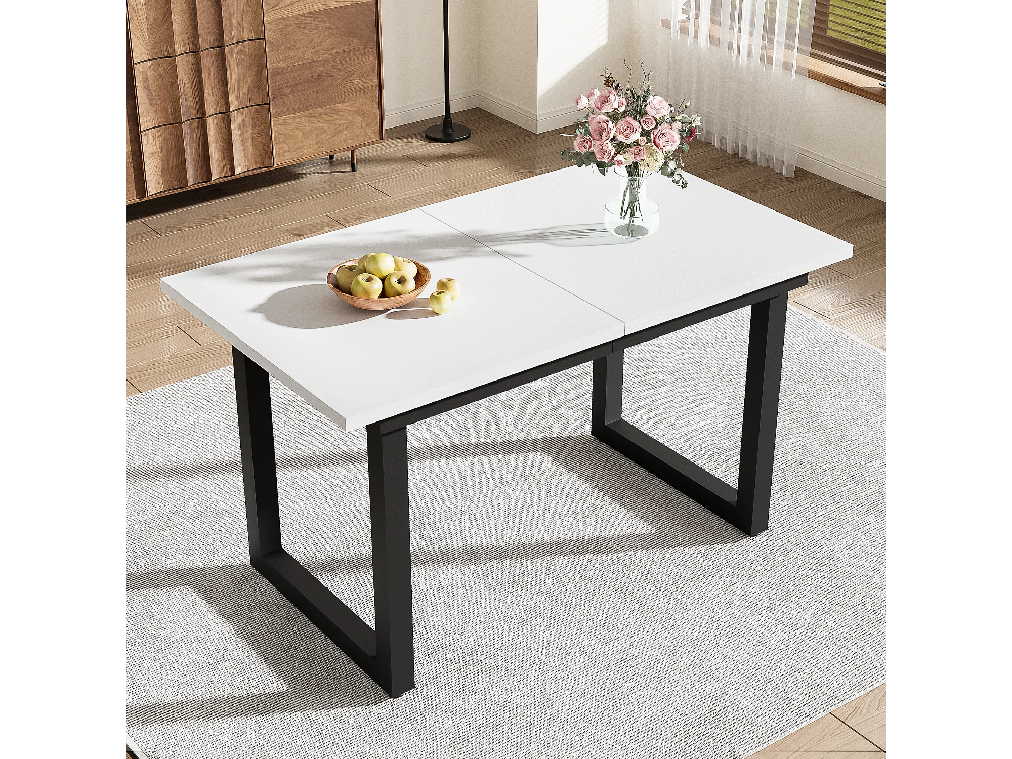 Tavolo da pranzo estensibile per 4/6 persone - 140/180 x 80 x 75 cm - MDF e gambe in ferro - Effetto marmo - Bianco