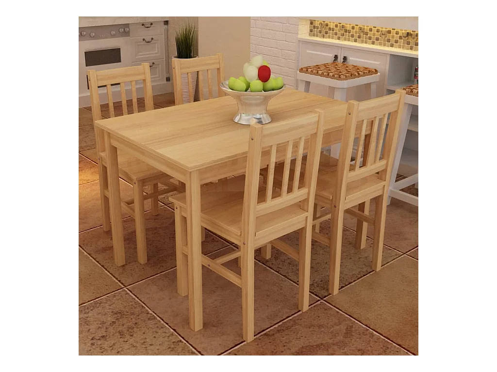 Tavolo da pranzo in legno con 4 sedie Naturale