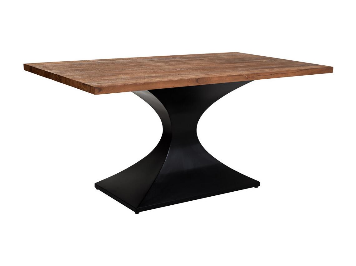 Tavolo pranzo design industriale MCW-H10a acciaio verniciato legno di olmo marrone