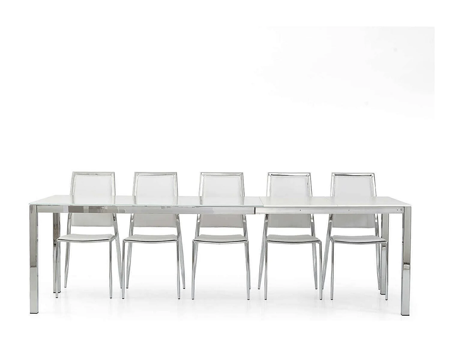 MilaniHome.it - Tavolo Da Pranzo Moderno Di Design Allungabile Cm 90x140/180/220 Bianco Con Piano In Vetro Per Sala Da Pranzo Ristorantedi coloreTrasparente