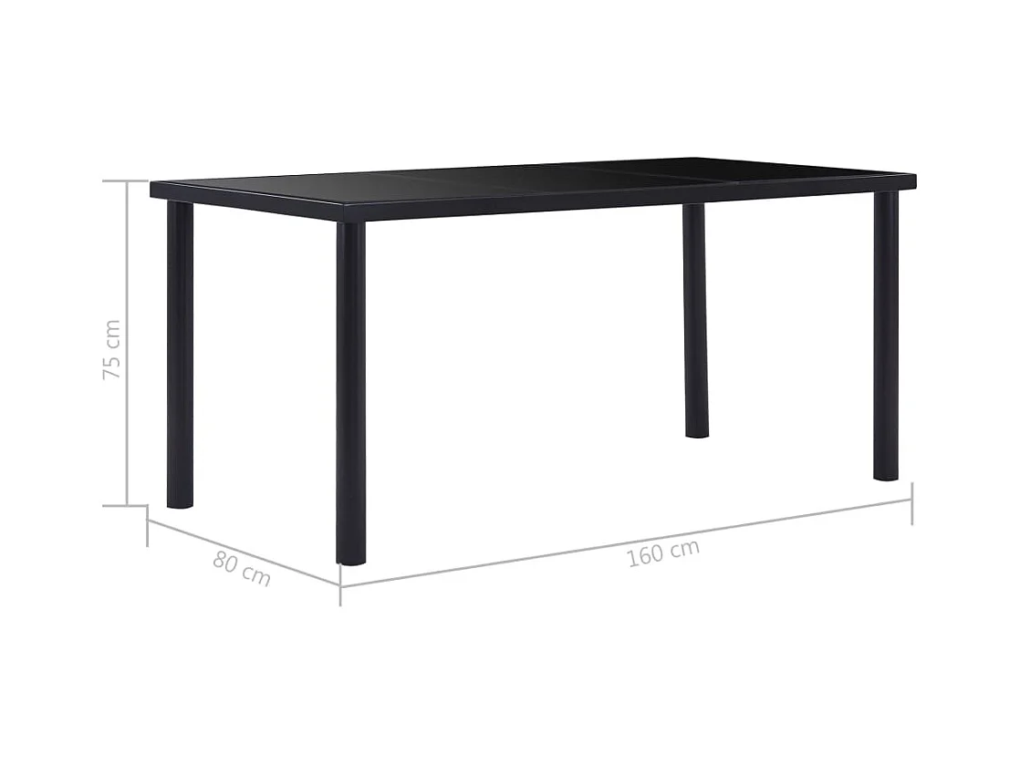 Tavolo da Pranzo Nero 160x80x75 cm in Vetro Temperato