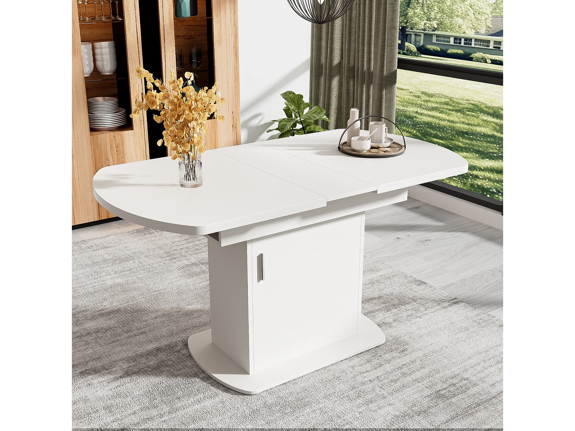 Tavolo da pranzo ovale allungabile per 4-6 coperti con ripiani - L110/130xP70xH75cm - Truciolare - Bianco + argento
