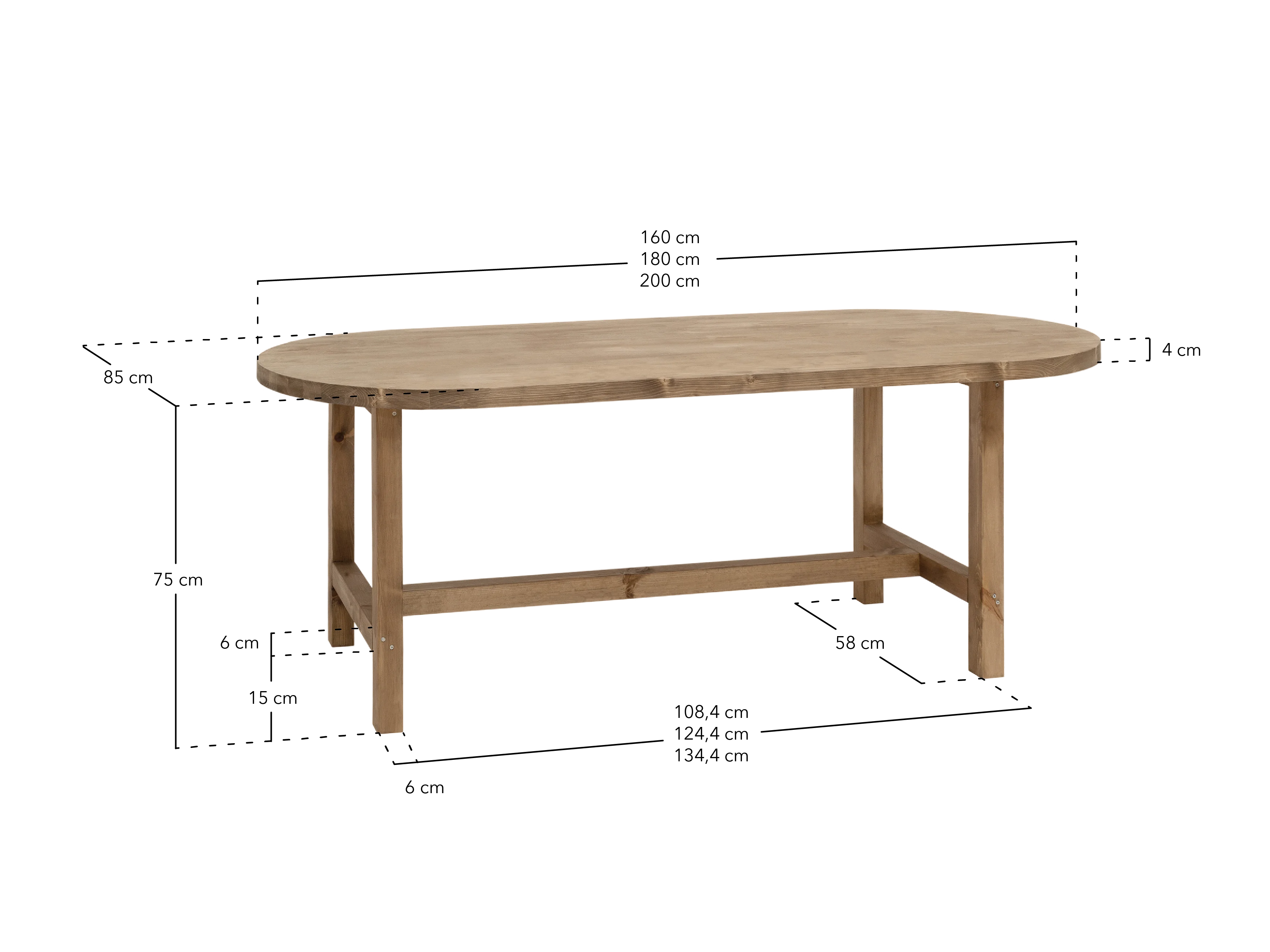 Tavolo da pranzo ovale in legno massello in tono marrone 180x75cm - OLIVIA - DECOWOOD