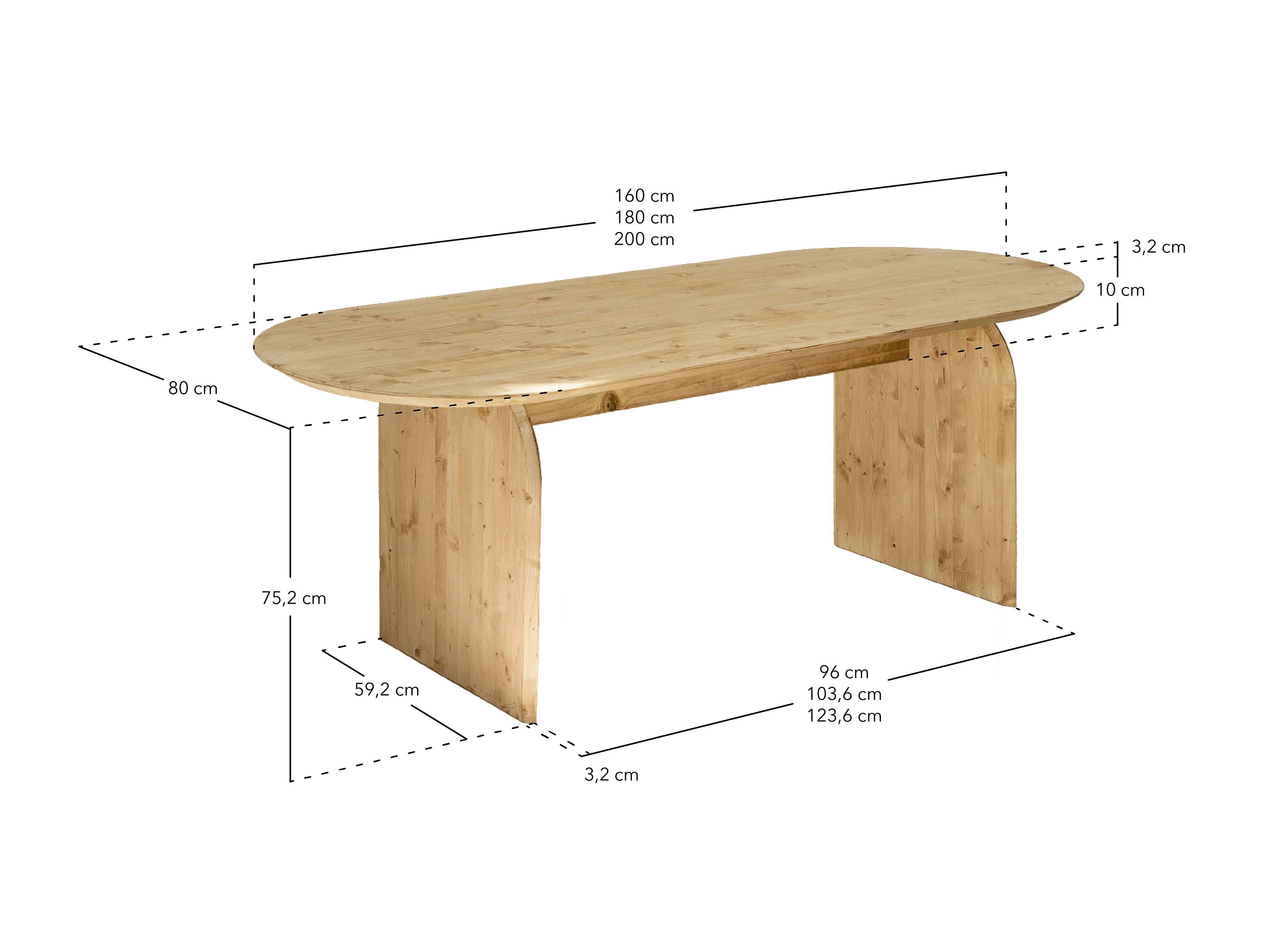 Tavolo da pranzo ovale in legno massello in tono naturale 200x75,2cm - BLOOM - DECOWOOD