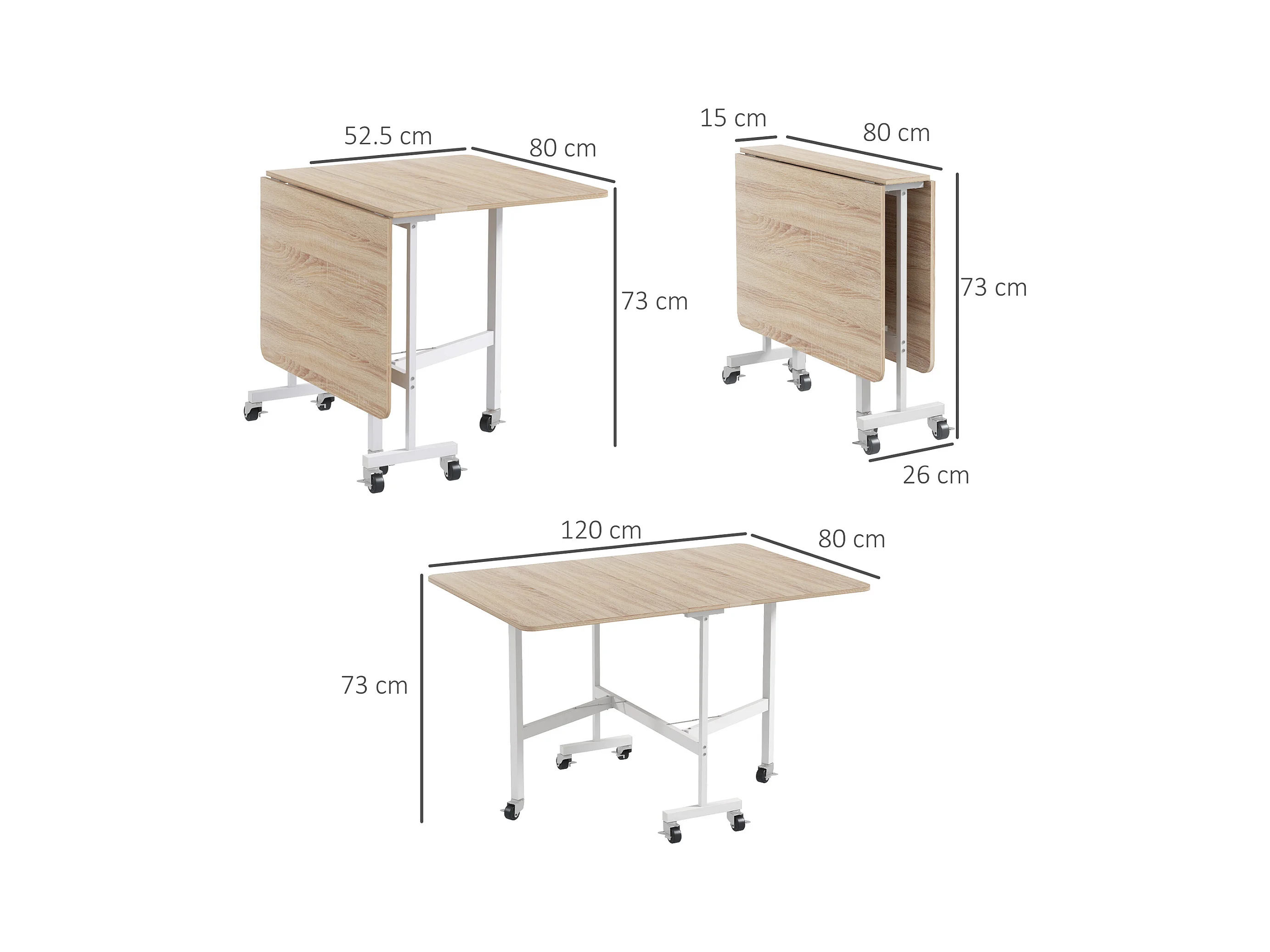 Tavolo da pranzo pieghevole in metallo e MDF con roulette per 4-6 persone, cucina per cucina