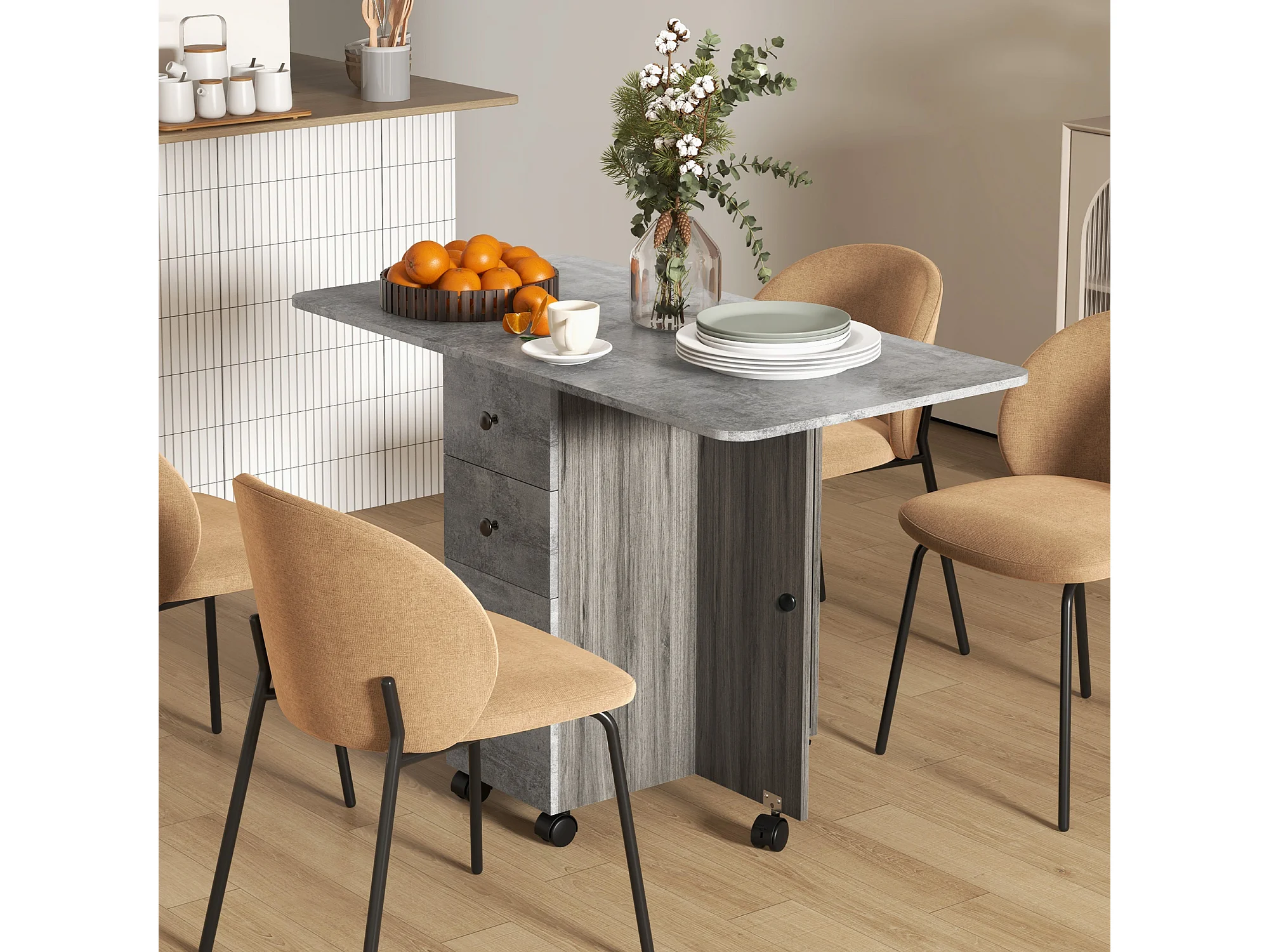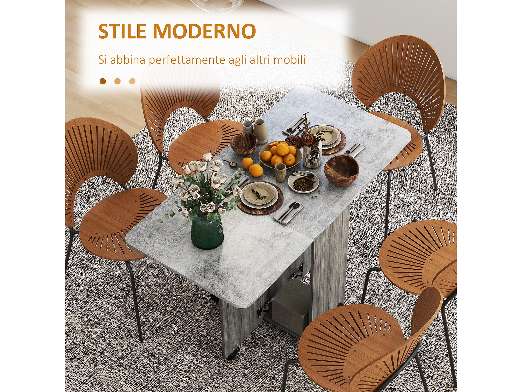Tavolo da pranzo pieghevole 6 persone con ripiano e 6 ruote grigio
