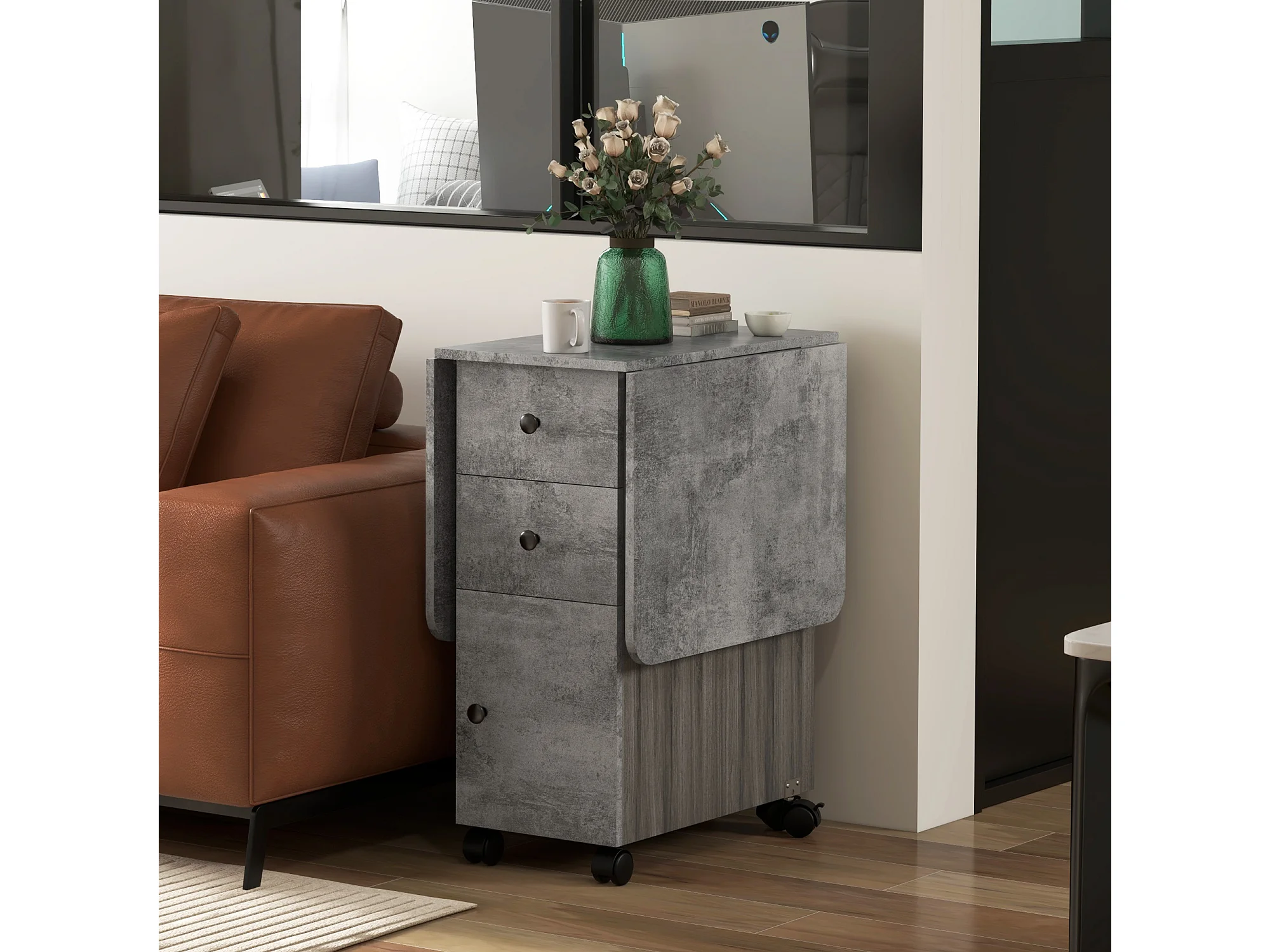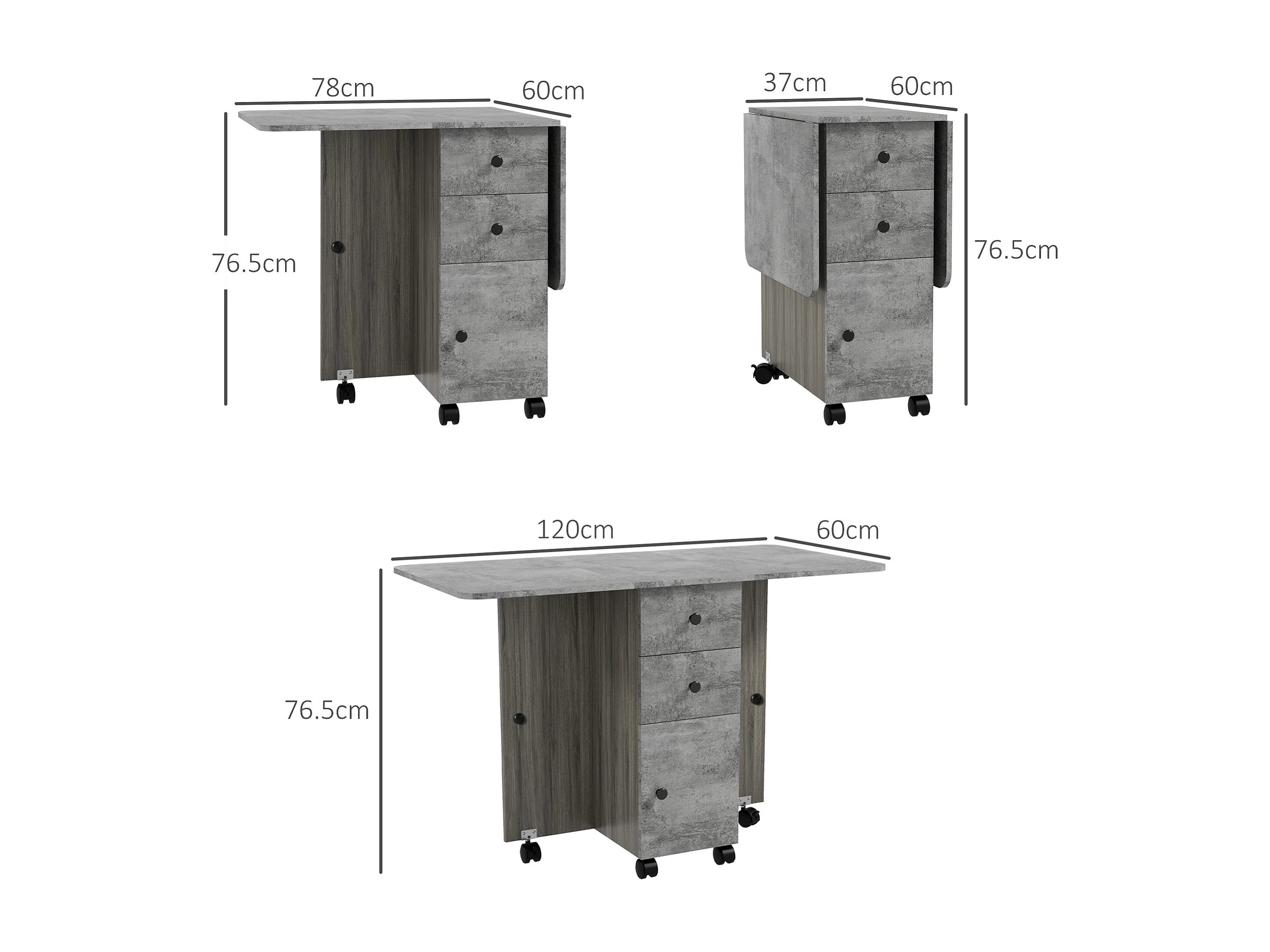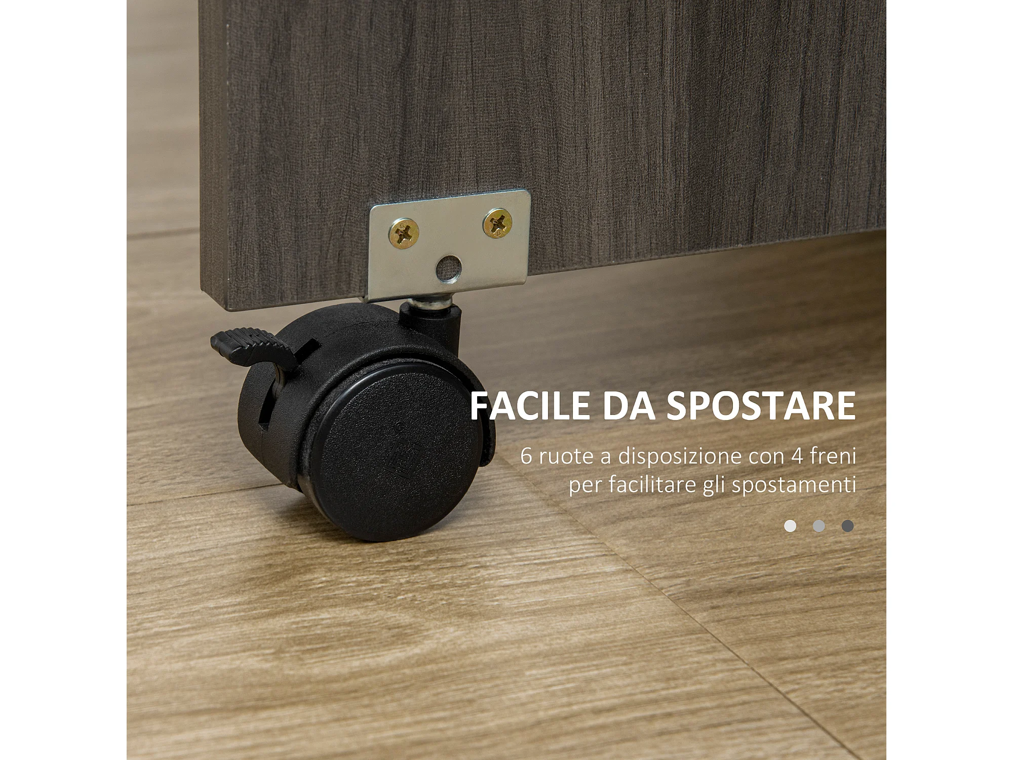 Tavolo pieghevole in truciolato 2 cassetti 1 armadietto 6 ruote
