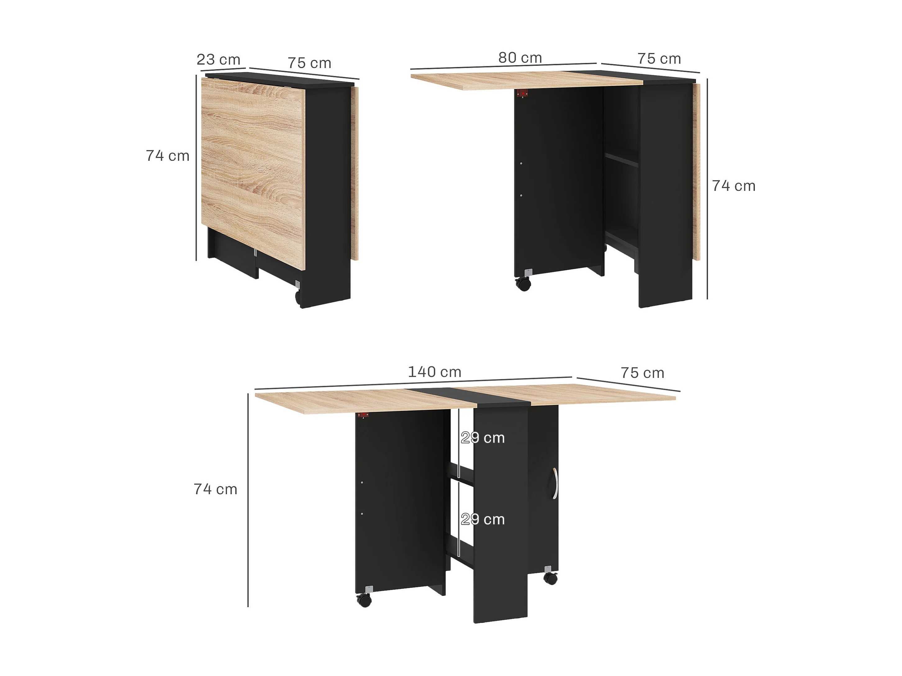 Tavolo da pranzo a ribalta stile industriale per 2-4 persone con 2 lati allungabili