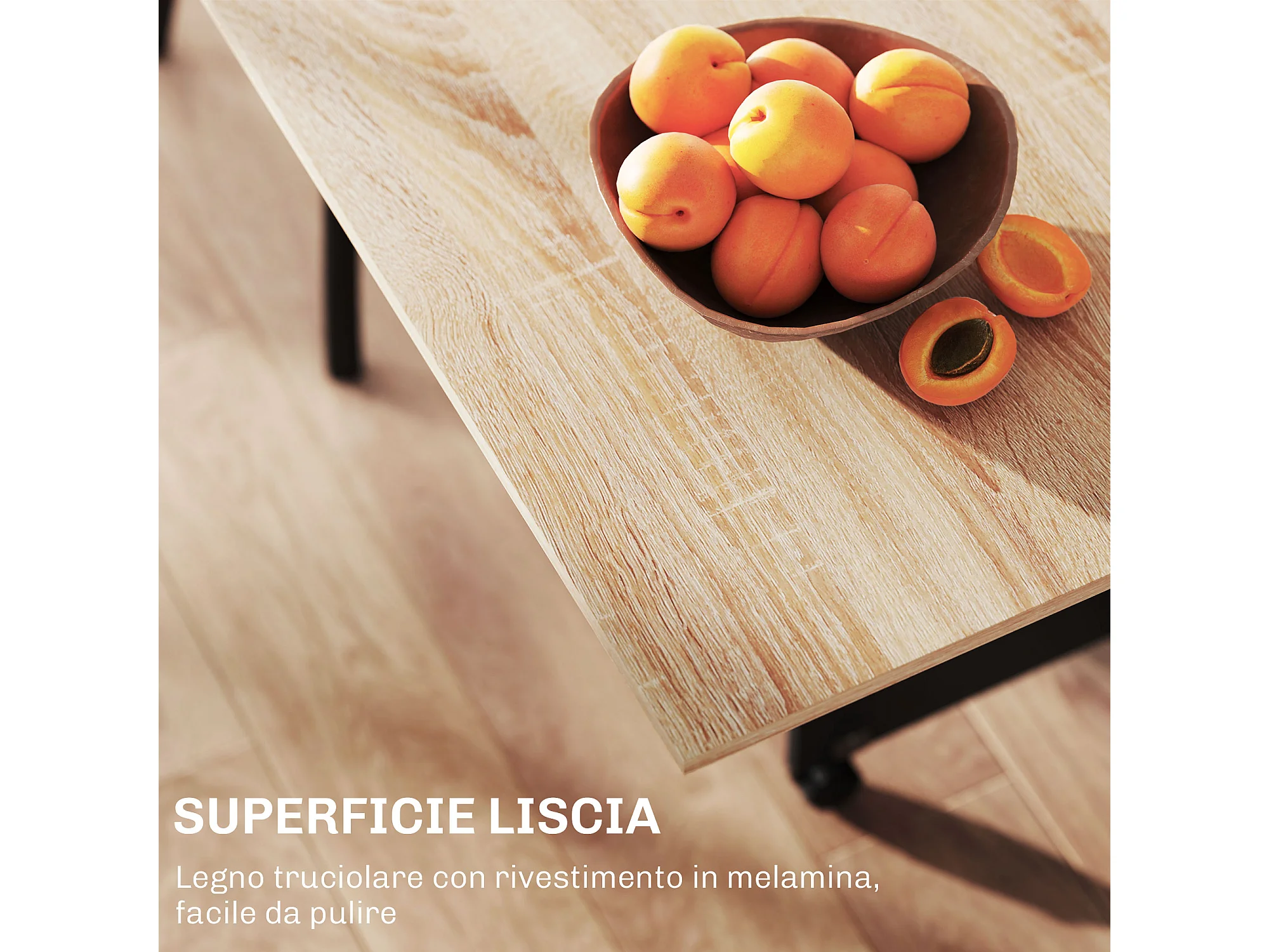Tavolo pieghevole stile industriale con 6 ruote marrone rustico