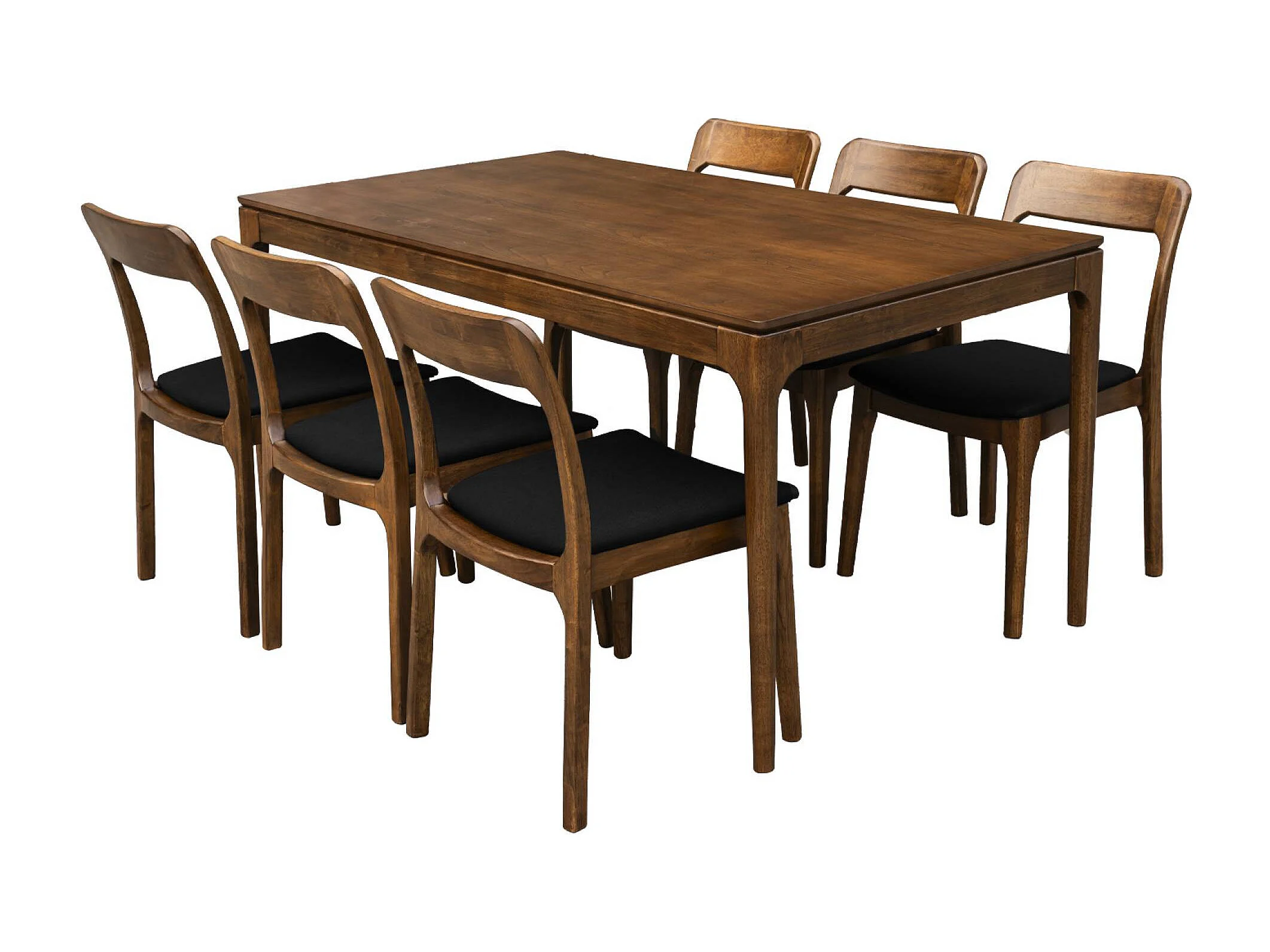 Tavolo da pranzo rettangolare in legno di hevea di 6 posti, noce