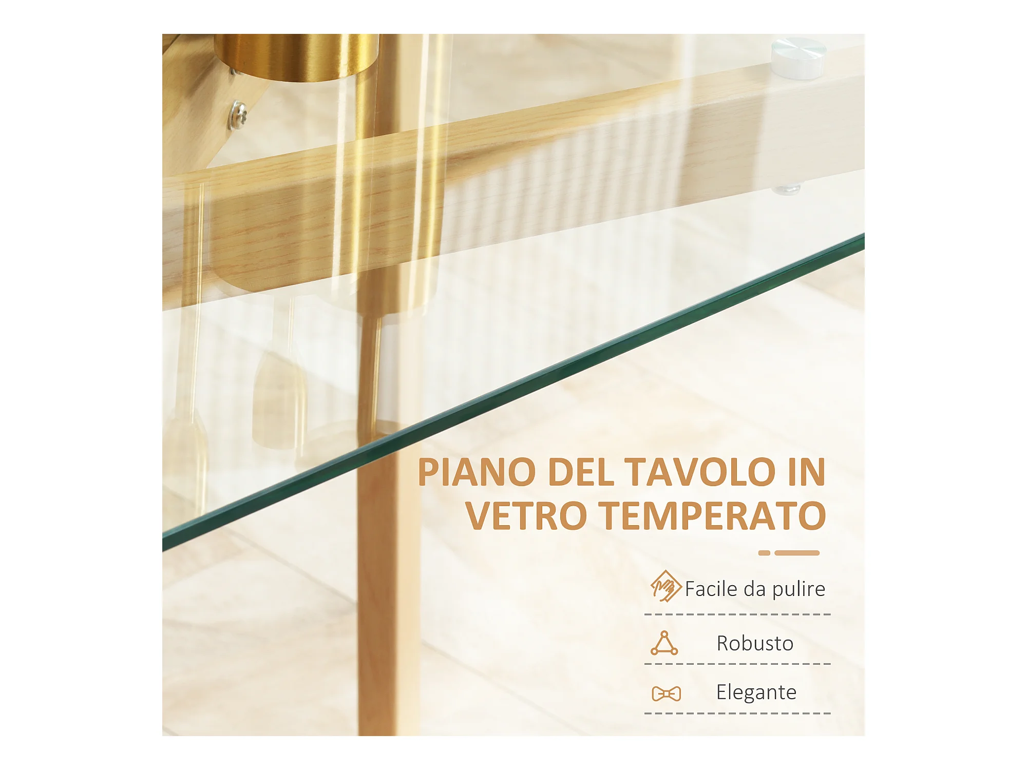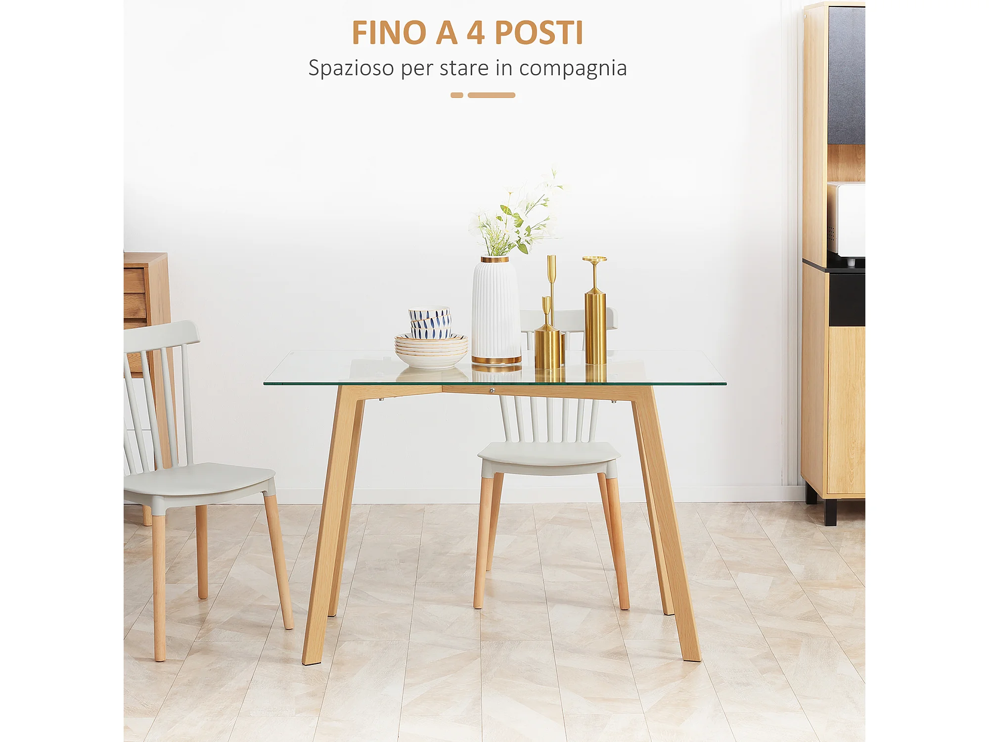 Tavolo da pranzo rettangolare per 4 persone in acciaio e vetro