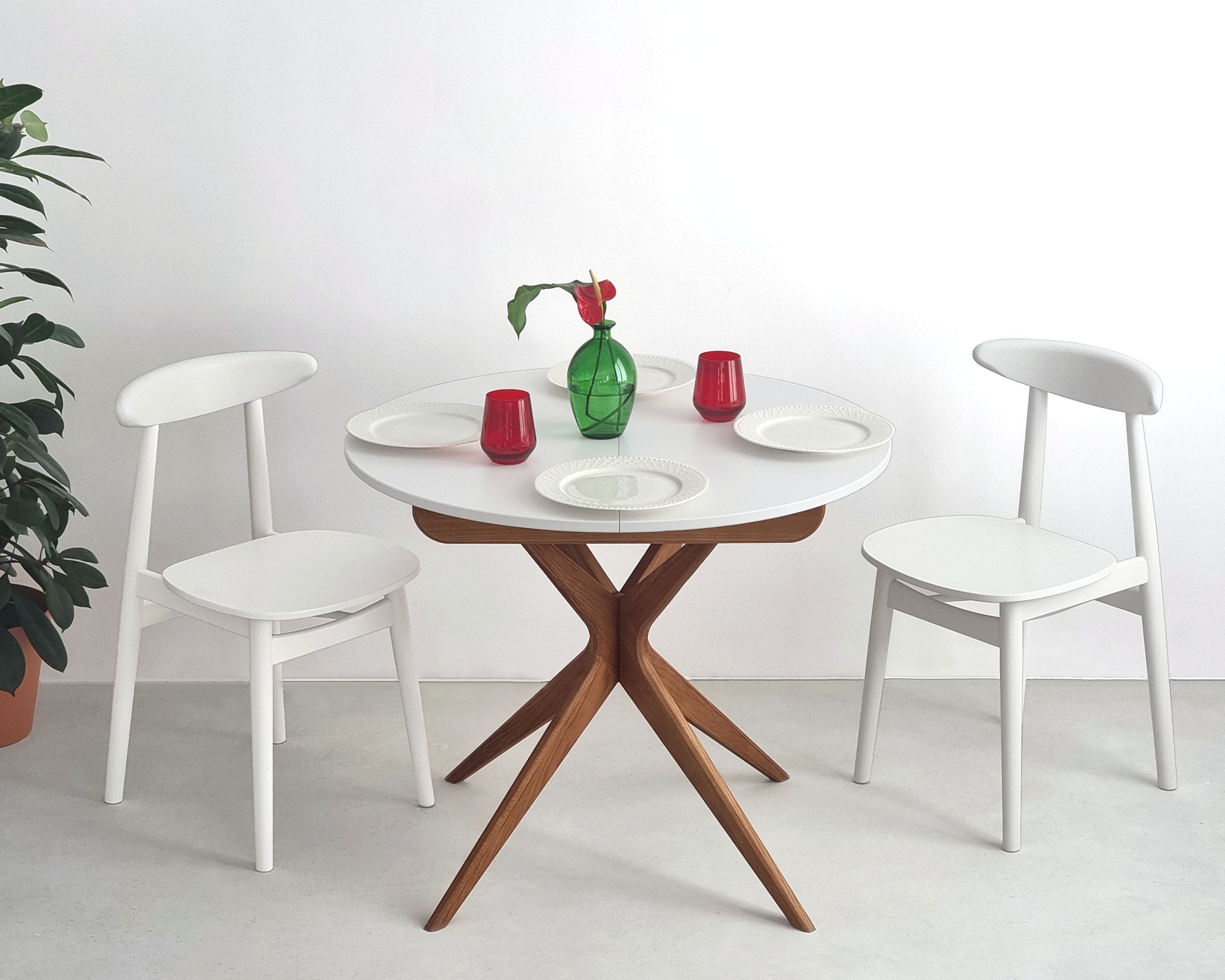 Tavolo da pranzo rotondo allungabile 90cm Jubi Bianco | Gamba in frassino tinto rovere