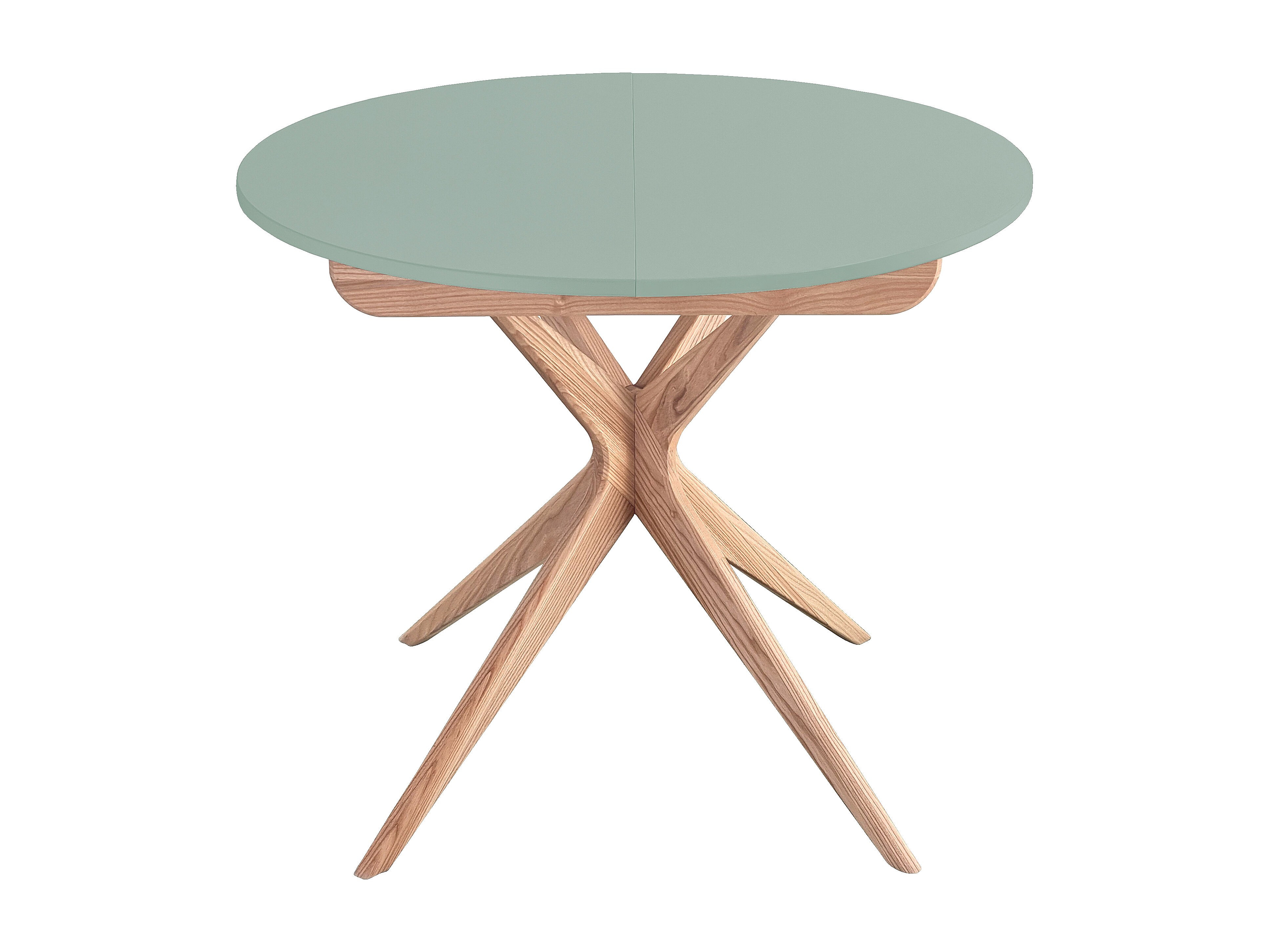 Tavolo da pranzo rotondo allungabile 90cm Jubi Verde Salvia | Gamba in frassino