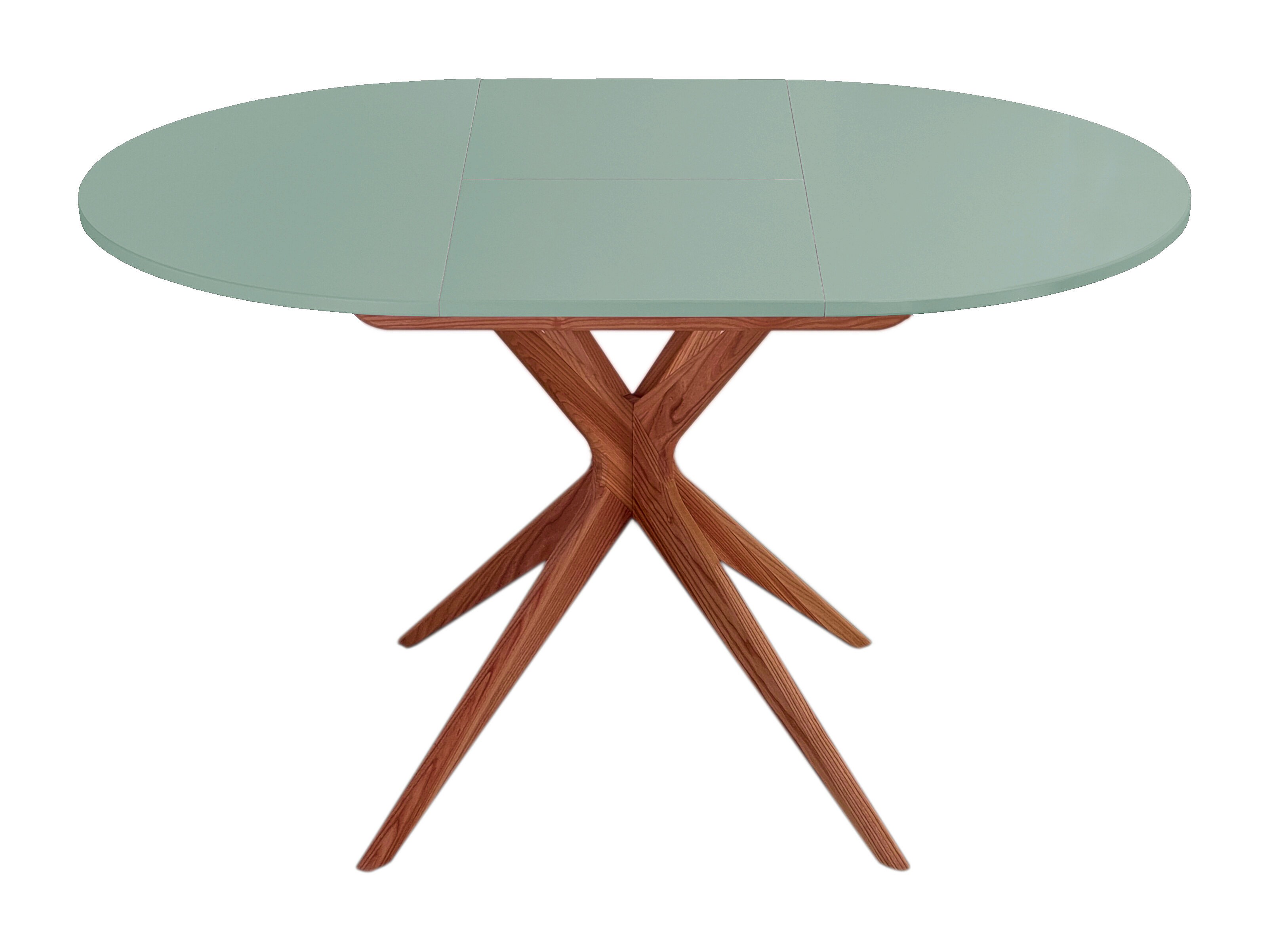 Tavolo da pranzo rotondo allungabile 90cm Jubi Verde Salvia | Gamba in frassino