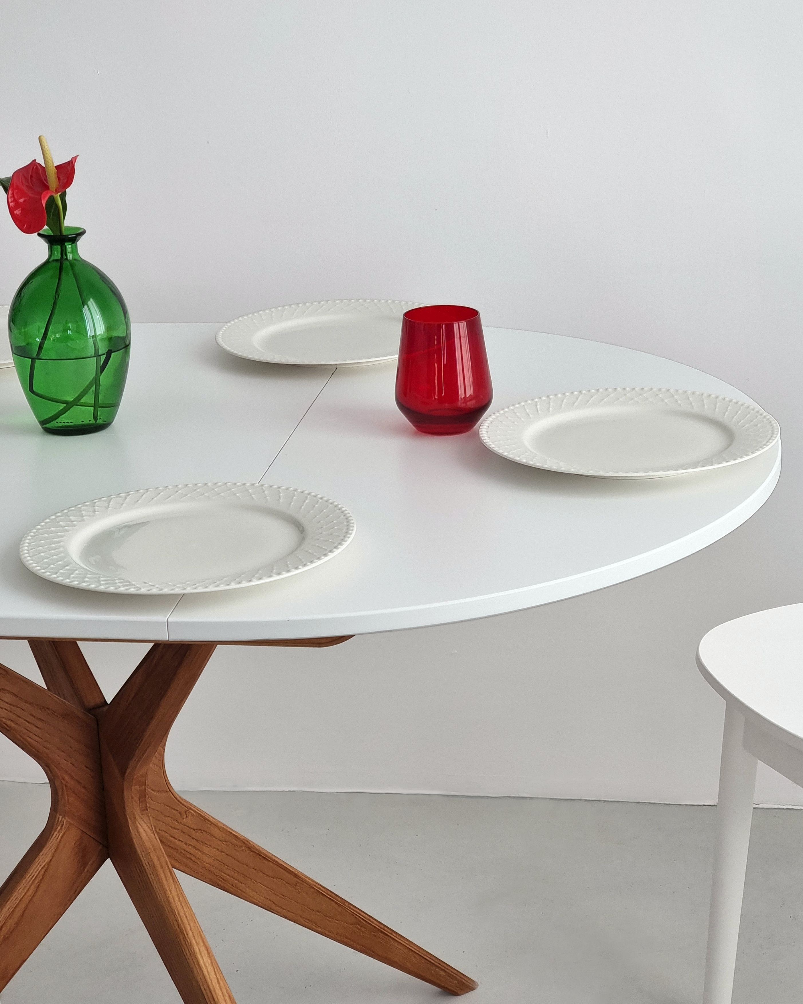 Tavolo da pranzo rotondo allungabile 90cm Jubi Bianco Gesso | Gamba in frassino