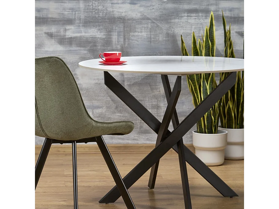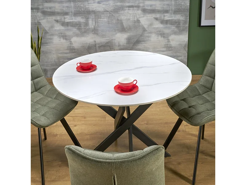 Tavolo da pranzo rotondo da 100 cm con piano in marmo bianco e gambe nere EDGAR 2