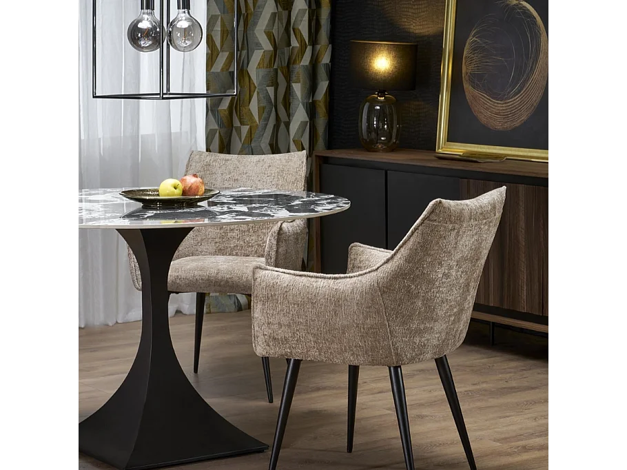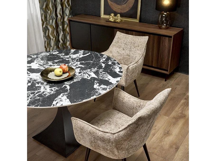 Tavolo da pranzo rotondo da 120 cm con marmo nero e gambe nere Lanuem